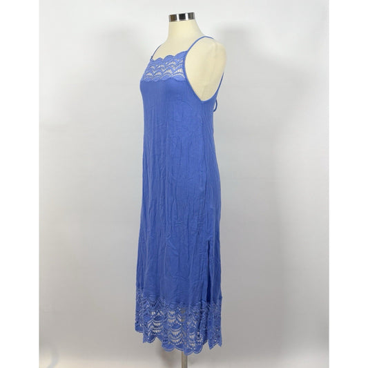 Free People Abbie Cotton Lace Sleeveless Midi Dress Blue - S