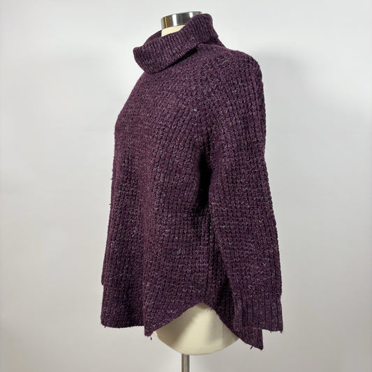 Free People Dylan Tweedy Oversized Purple Turtleneck Chunky Sweater - M