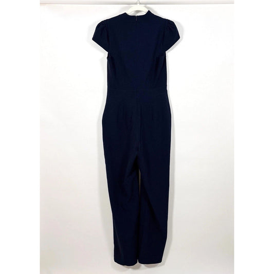 Vince Camuto Wide Leg Notch Collar Cap Sleeve Crepe Jumpsuit Navy - 4