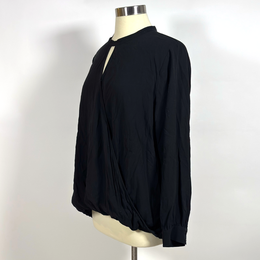 Eileen Fisher System Georgette Silk Wrap Blouse Black Crepe - XL