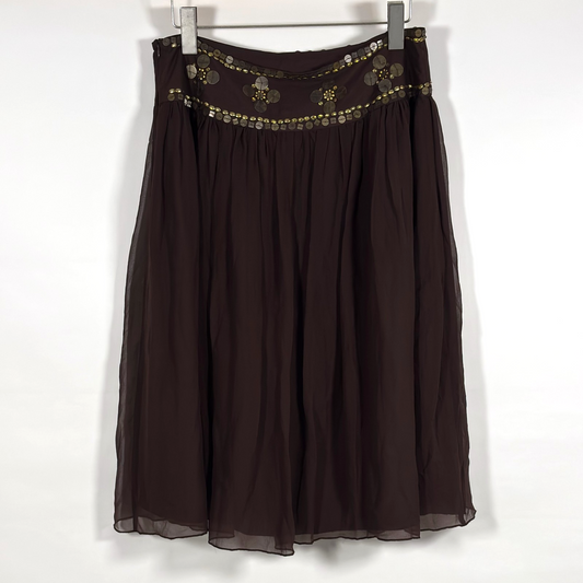 Willi Smith Brown Silk Midi Skirt Gold Sequins - Size 10