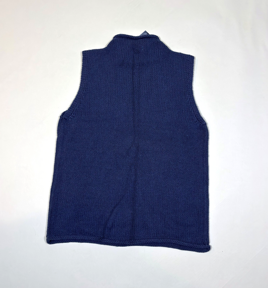 LL Bean Silk Cotton Rollneck Mockneck Knit Sweater Vest Blue - L