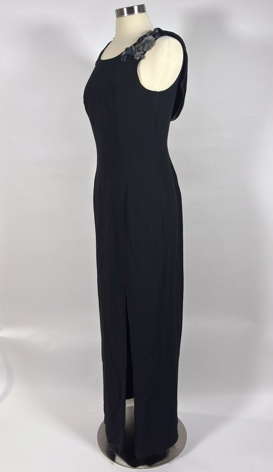 Loralie Black Floral Beaded Cowl Back Floor Length Gown - 10