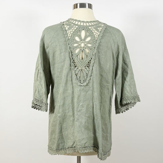 Valentina Naldi Linen Embroidered Kimono Cardigan Duster Sage Green - OS