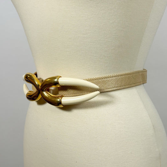 Alexis Kirk VTG Statement Belt Lucite Horn Cream Gold Adjustable S/M