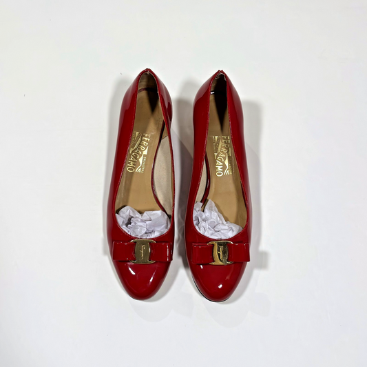 Salvatore Ferragamo Vara Bow Pumps Red Patent Leather - 10