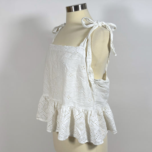 Madewell Rosalie Peplum Tie Strap Tank Top Blouse White Eyelet - 1X