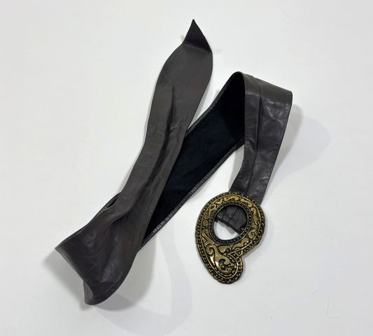 Vintage Paisley Gold Buckle Brown Leather Cinch Belt - M