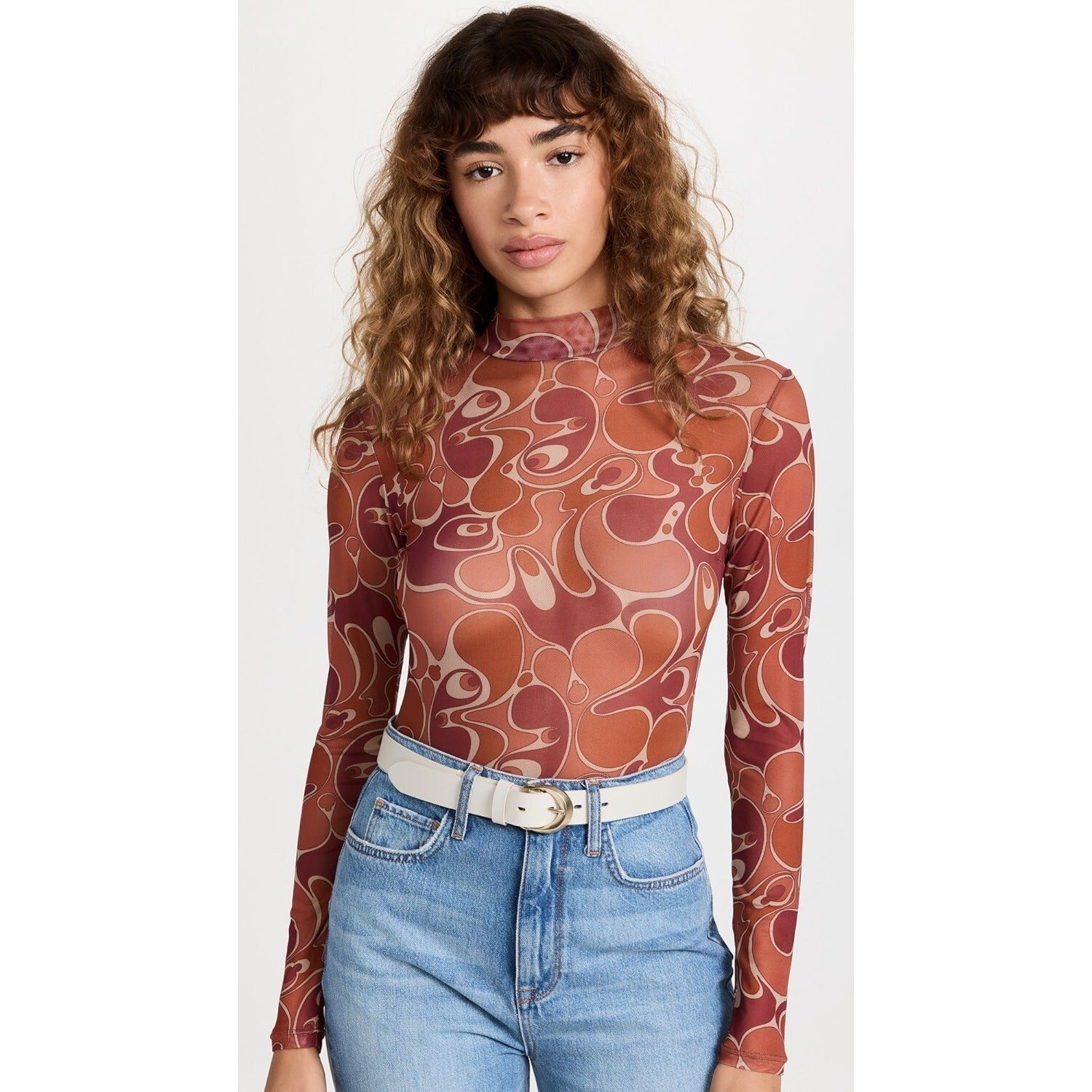 Andrea Iyamah Elle Mesh Caro Print Leotard Bodysuit - XS