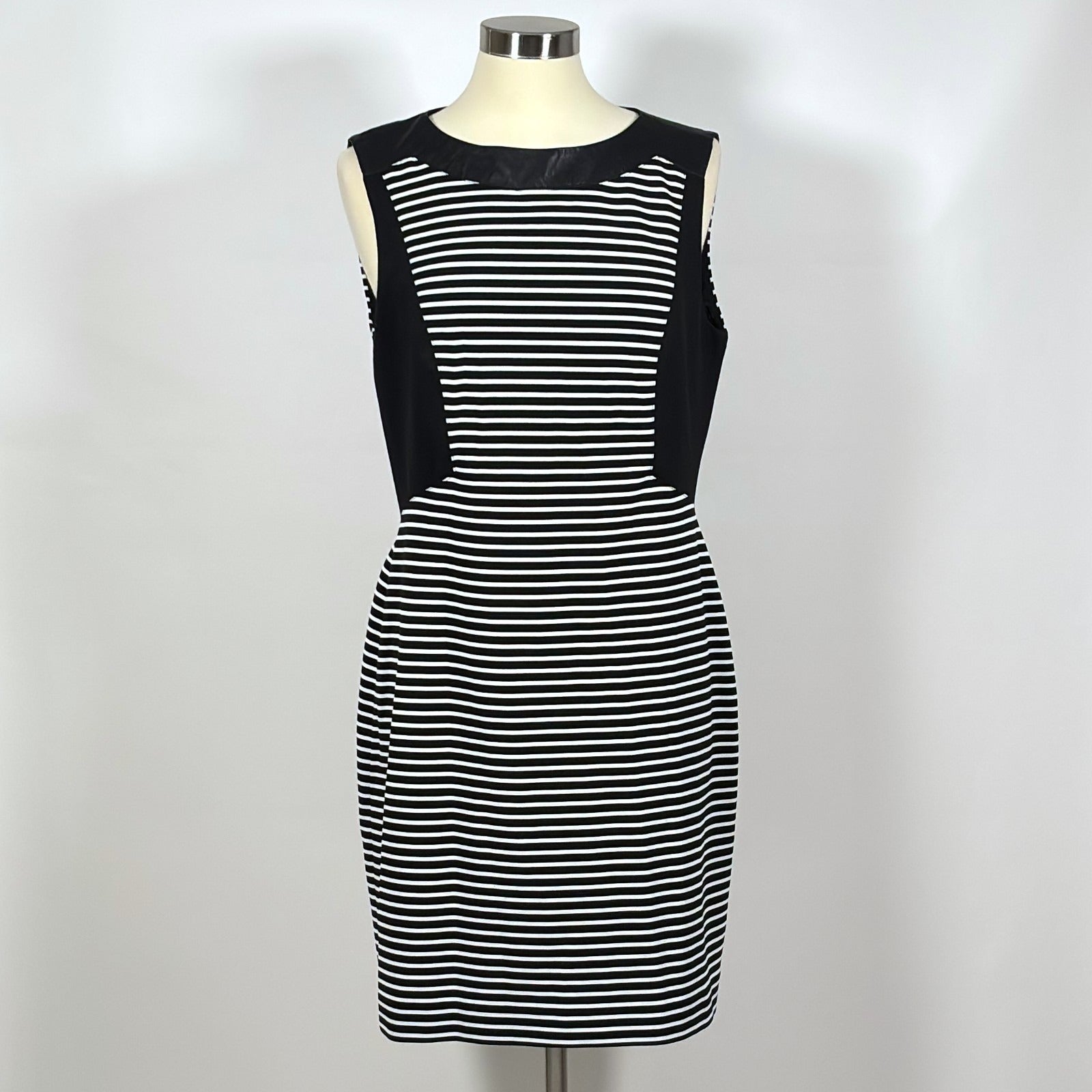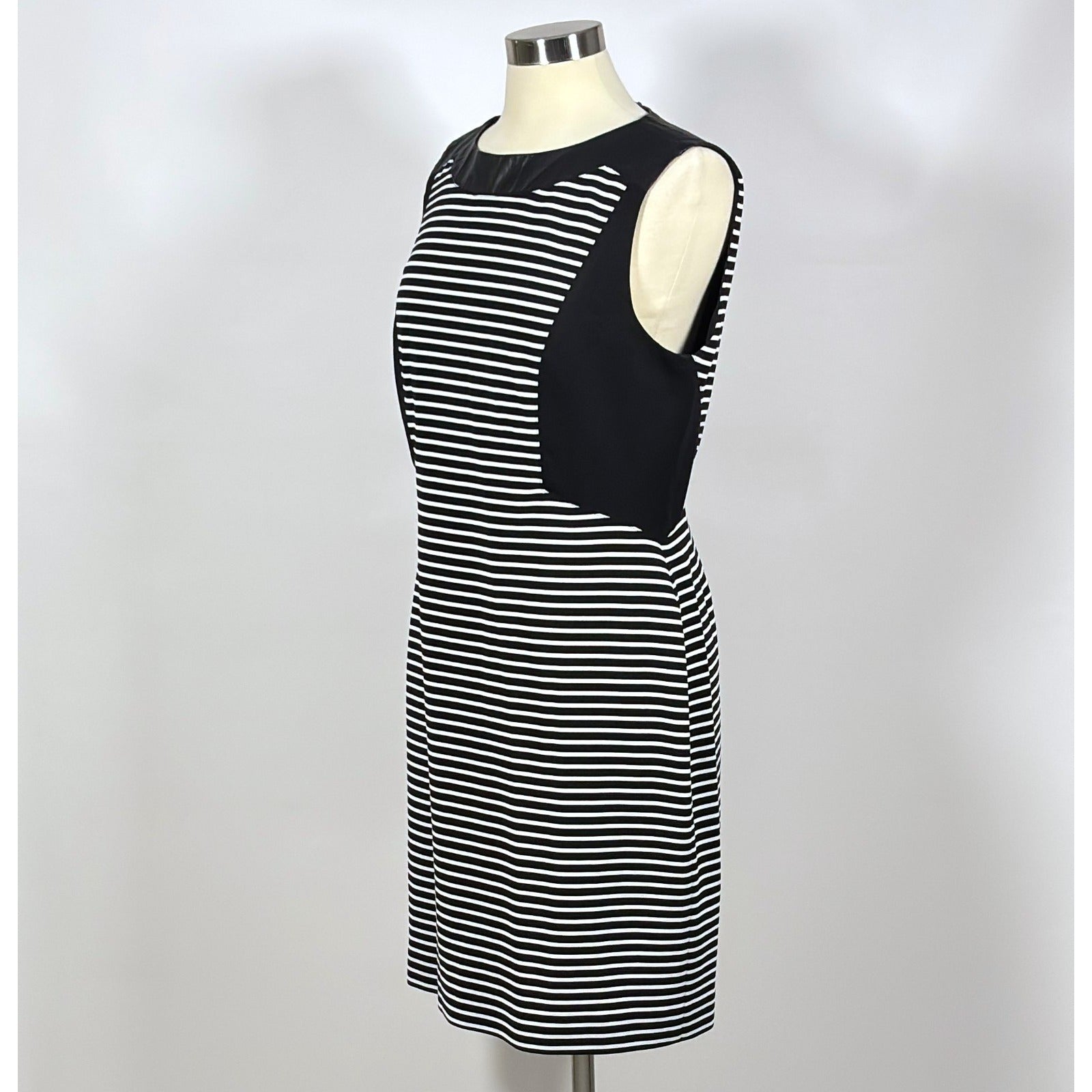 Anne Klein Striped Sheath Dress Vegan Leather Black White - 14