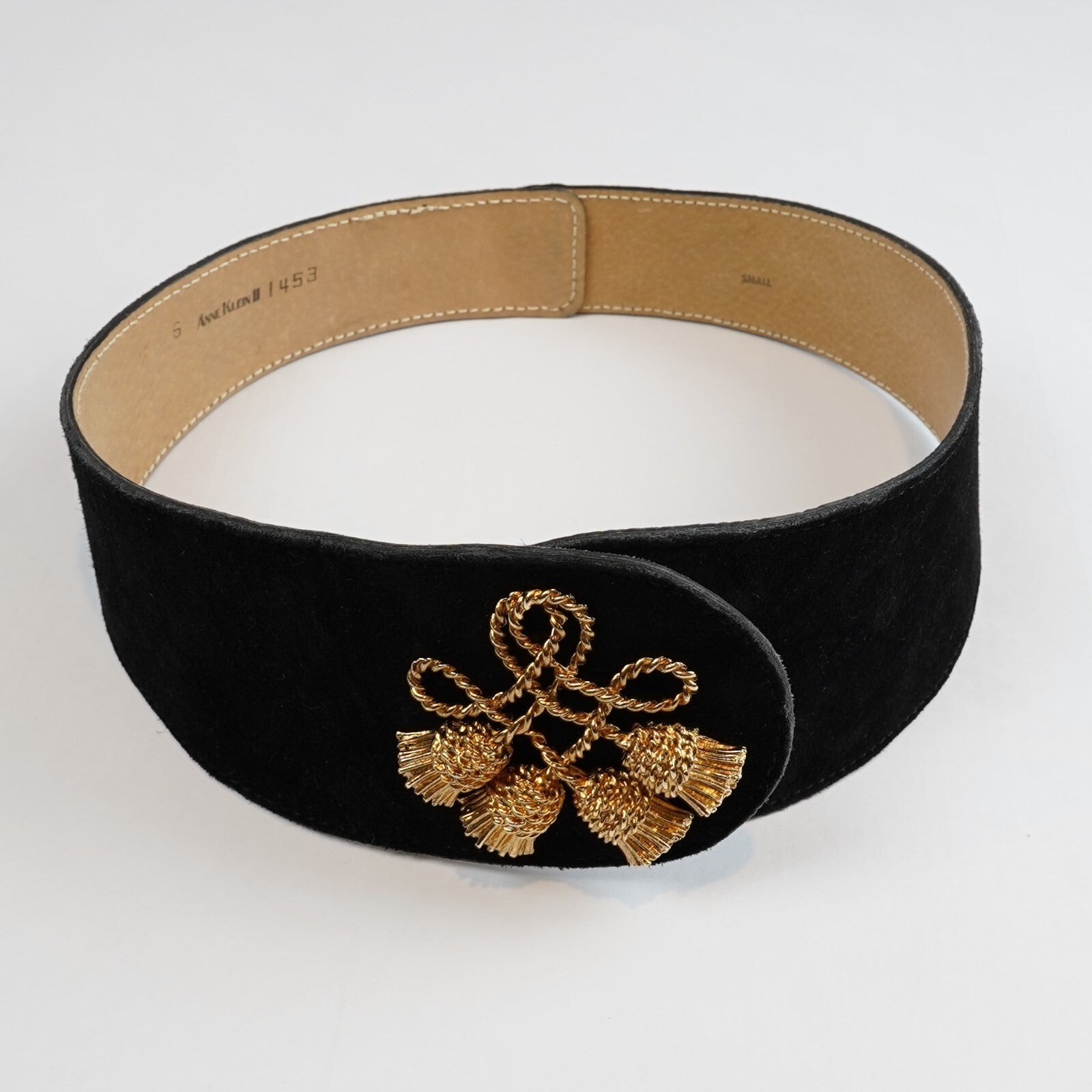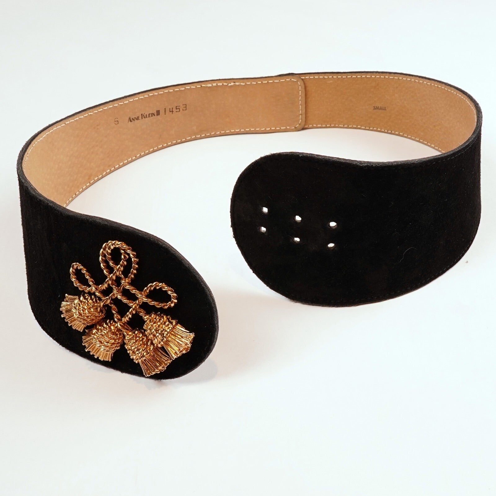 Anne Klein Vintage Suede Wide Statement Belt Black Gold - S