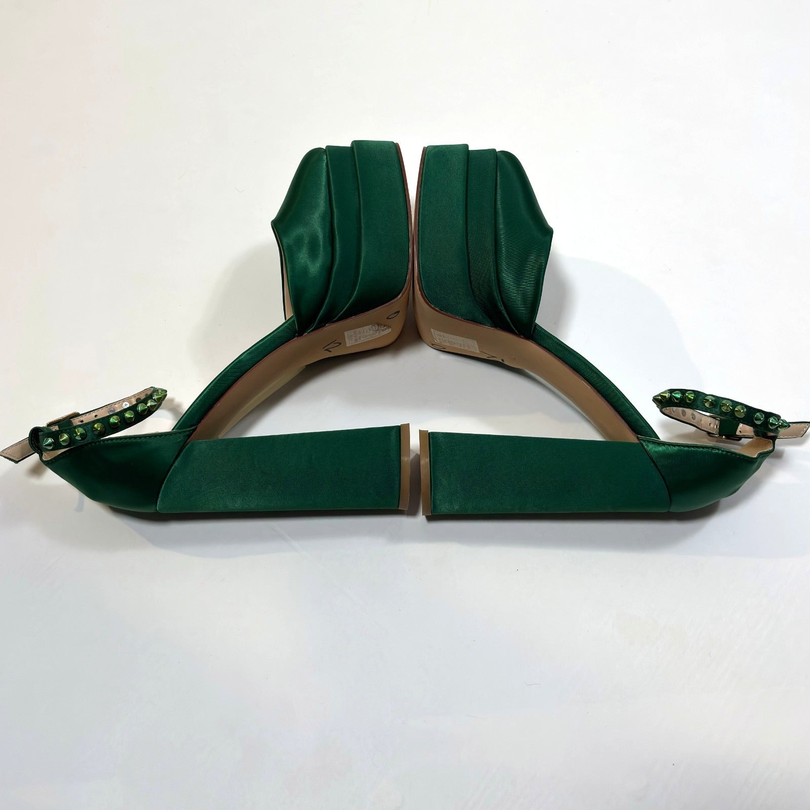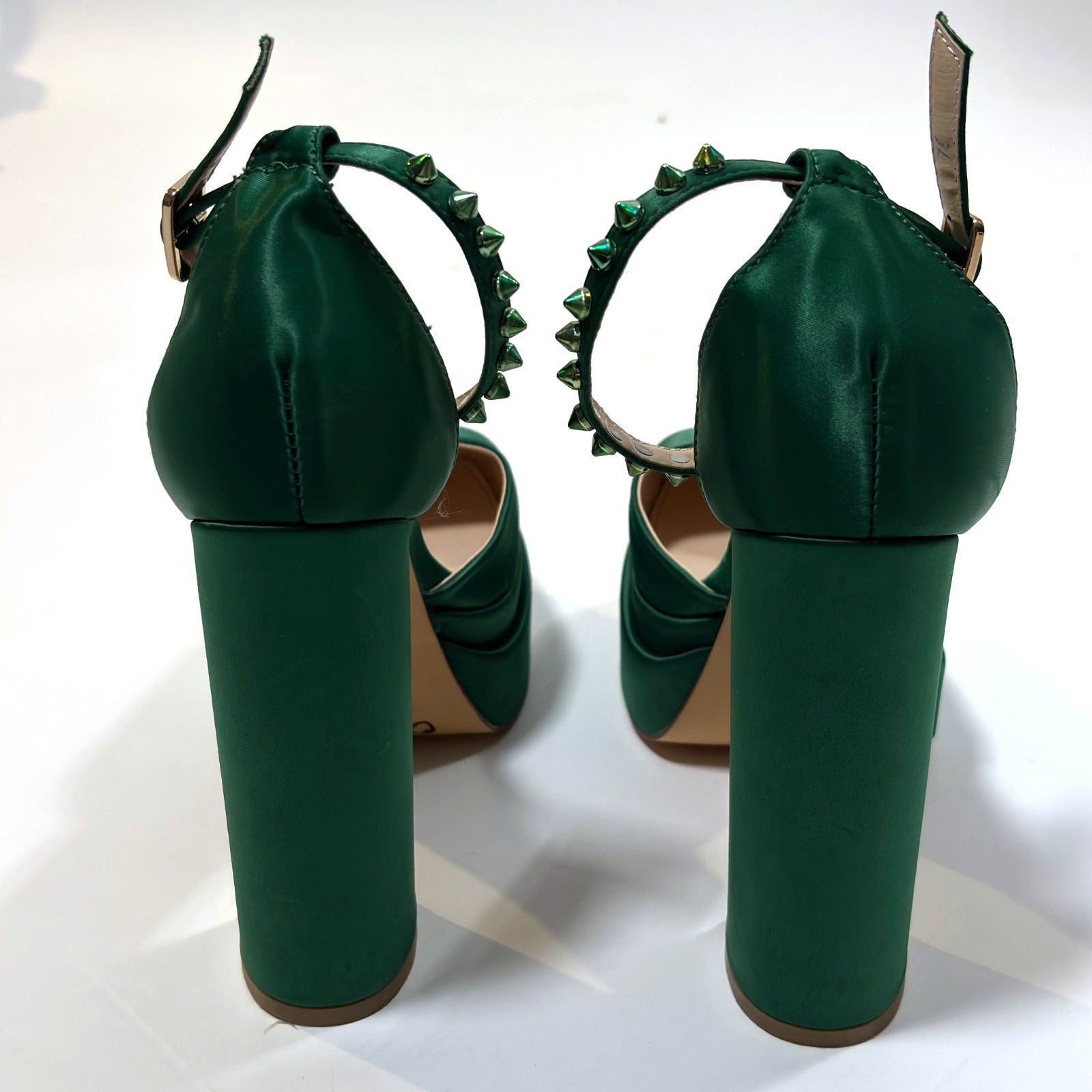 Azalea Wang Penelope Green Satin Studded Mega Platform Heels - 8.5