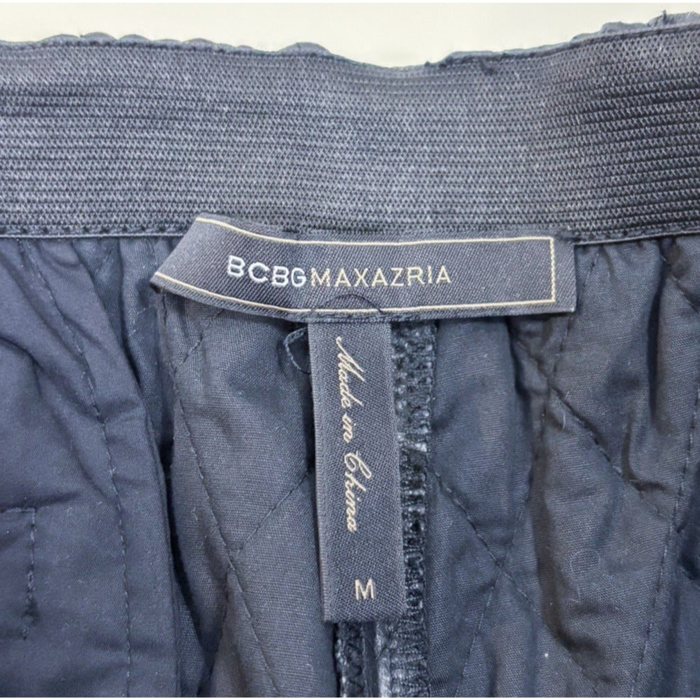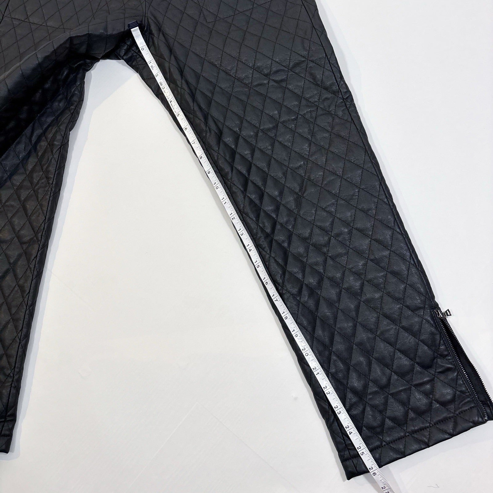 BCBGMaxazria Lucien Quilted Zip Vegan Leather Black Straight Leg Trouser Pants - M