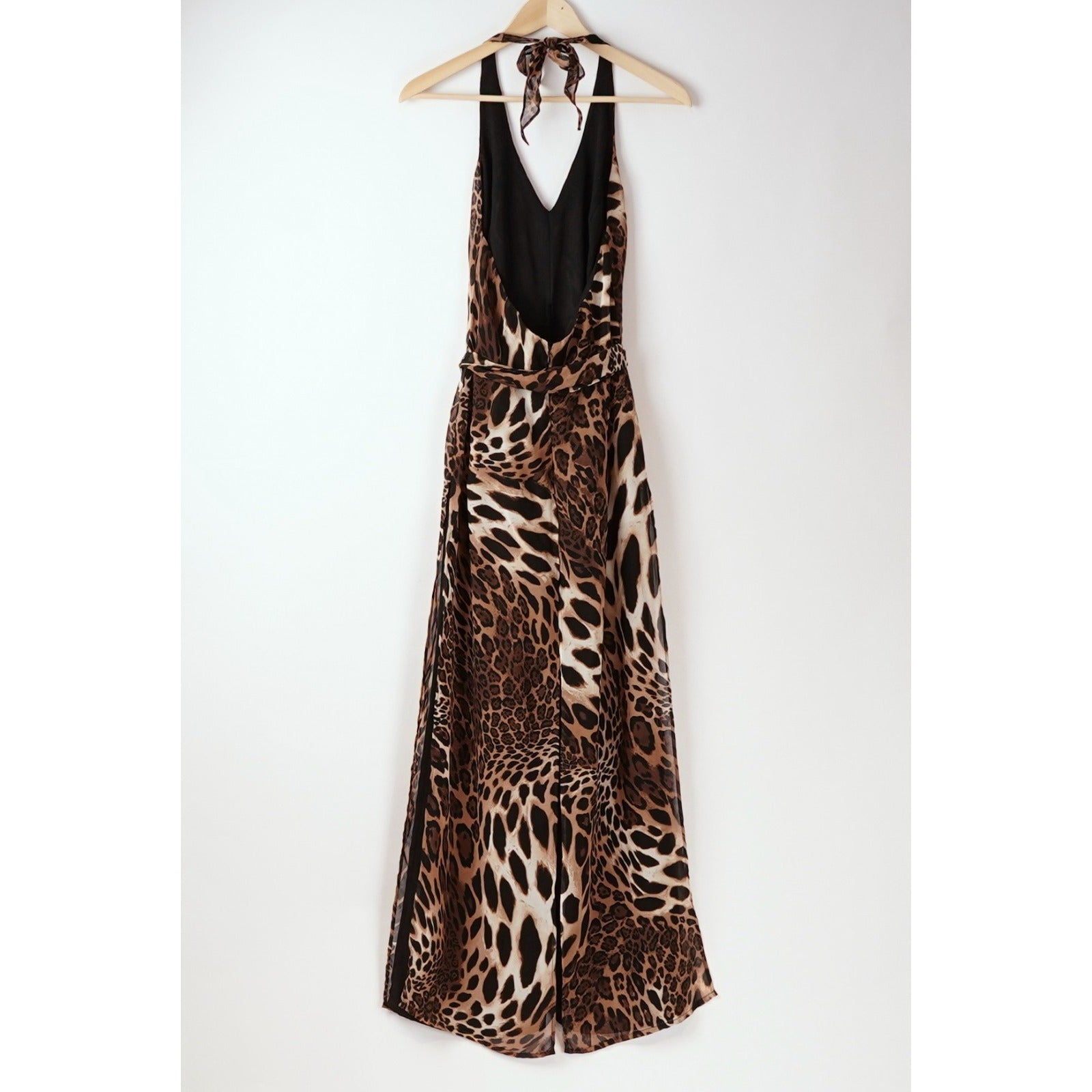 Cache Halter Wide Leg Jumpsuit Leopard Animal Print - Vintage 6