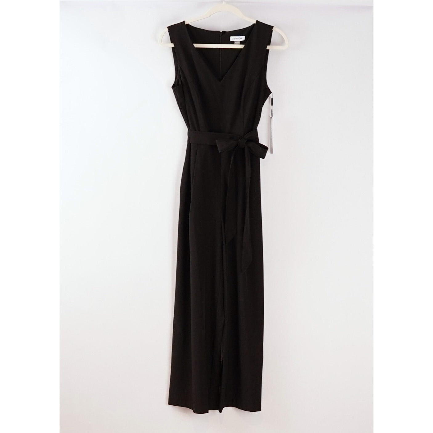 Calvin Klein Wide Leg Cropped Belted Jumpsuit Black - 2