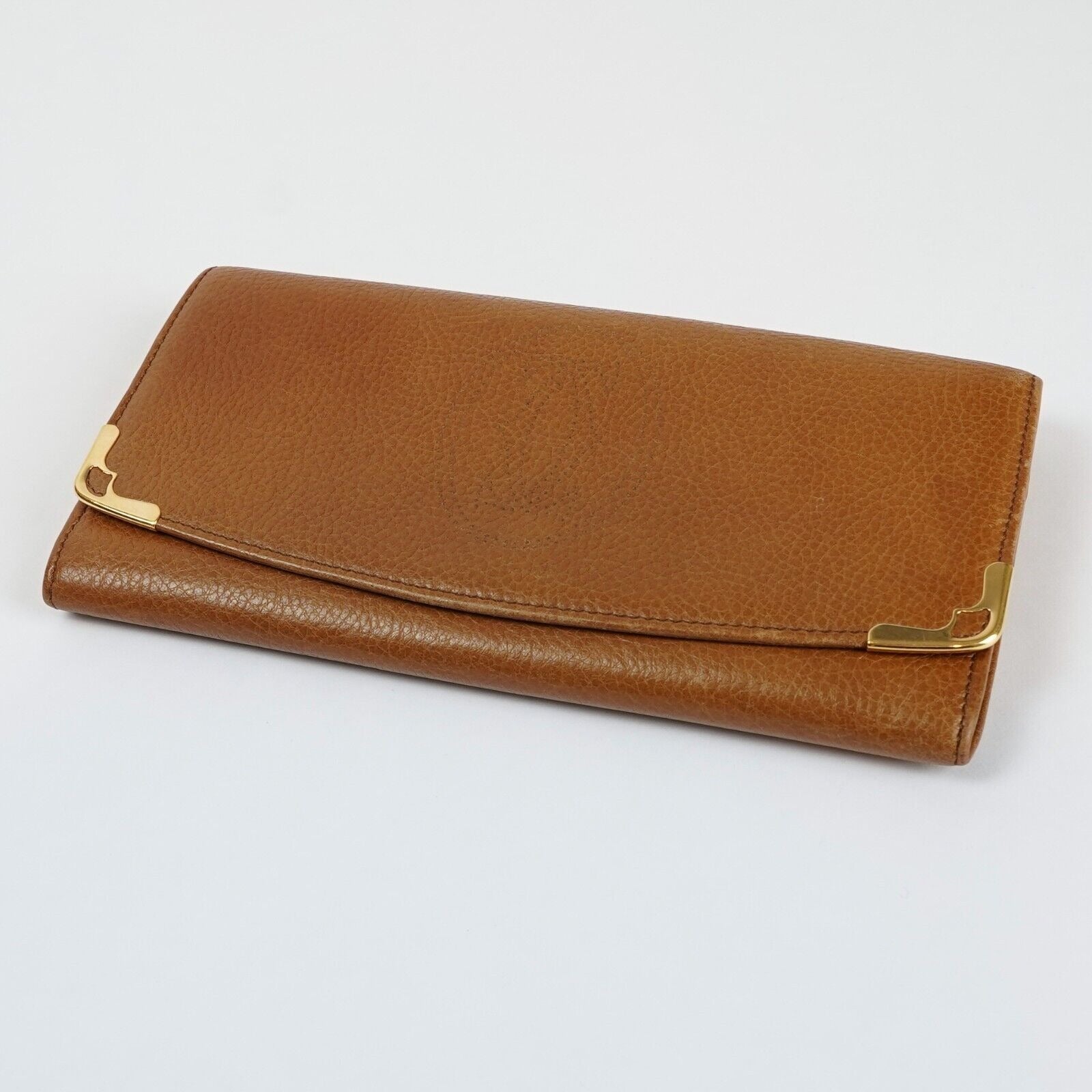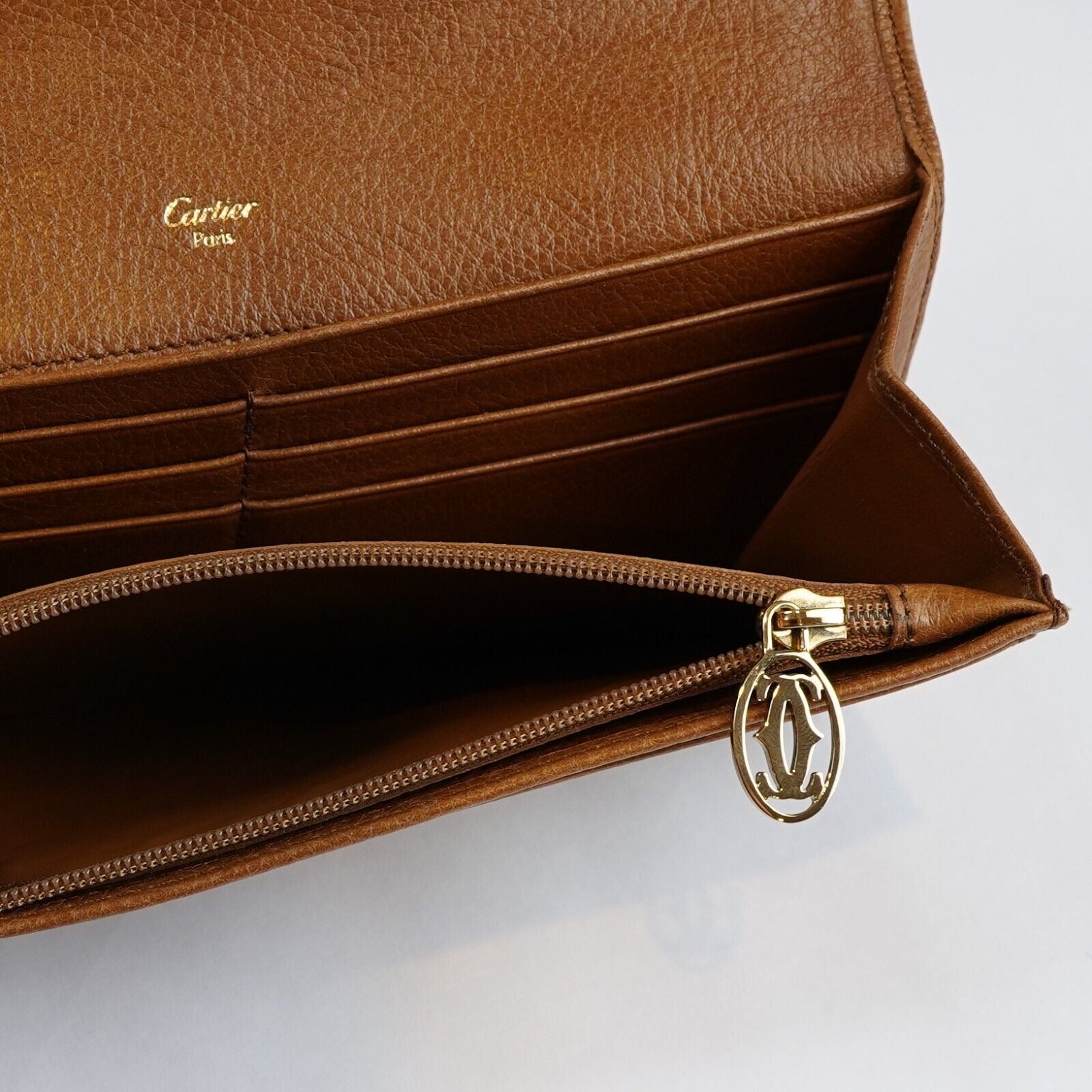 Cartier Marcello Long Continental Flap Wallet in Brown Calf Leather Gold Trim