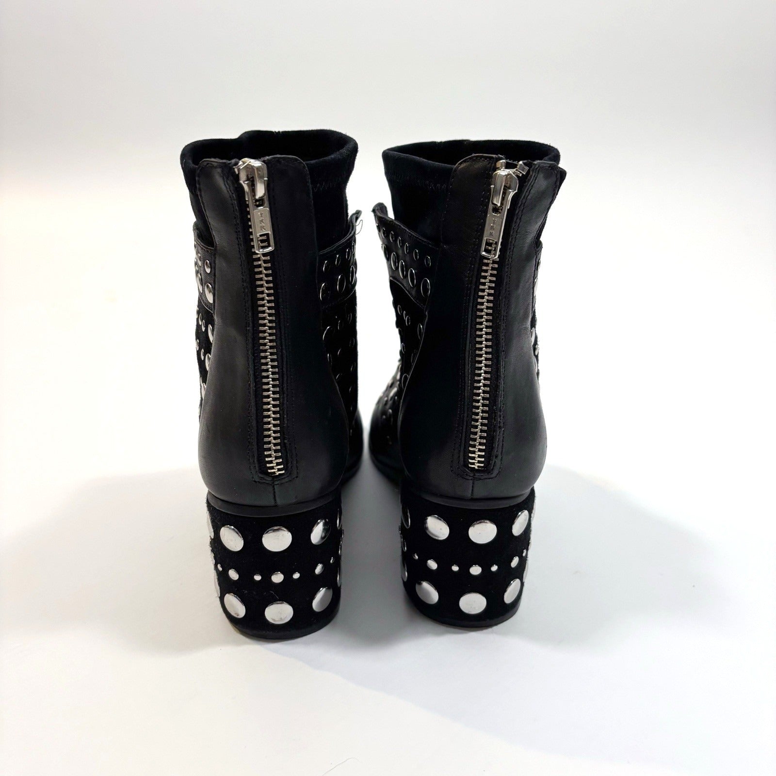 Cecelia New York Black Leather Silver Studded Ankle Boots