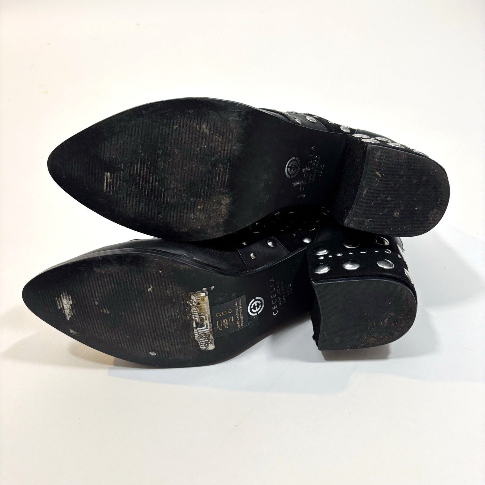 Cecelia New York Black Leather Silver Studded Ankle Boots Block Heel - 10