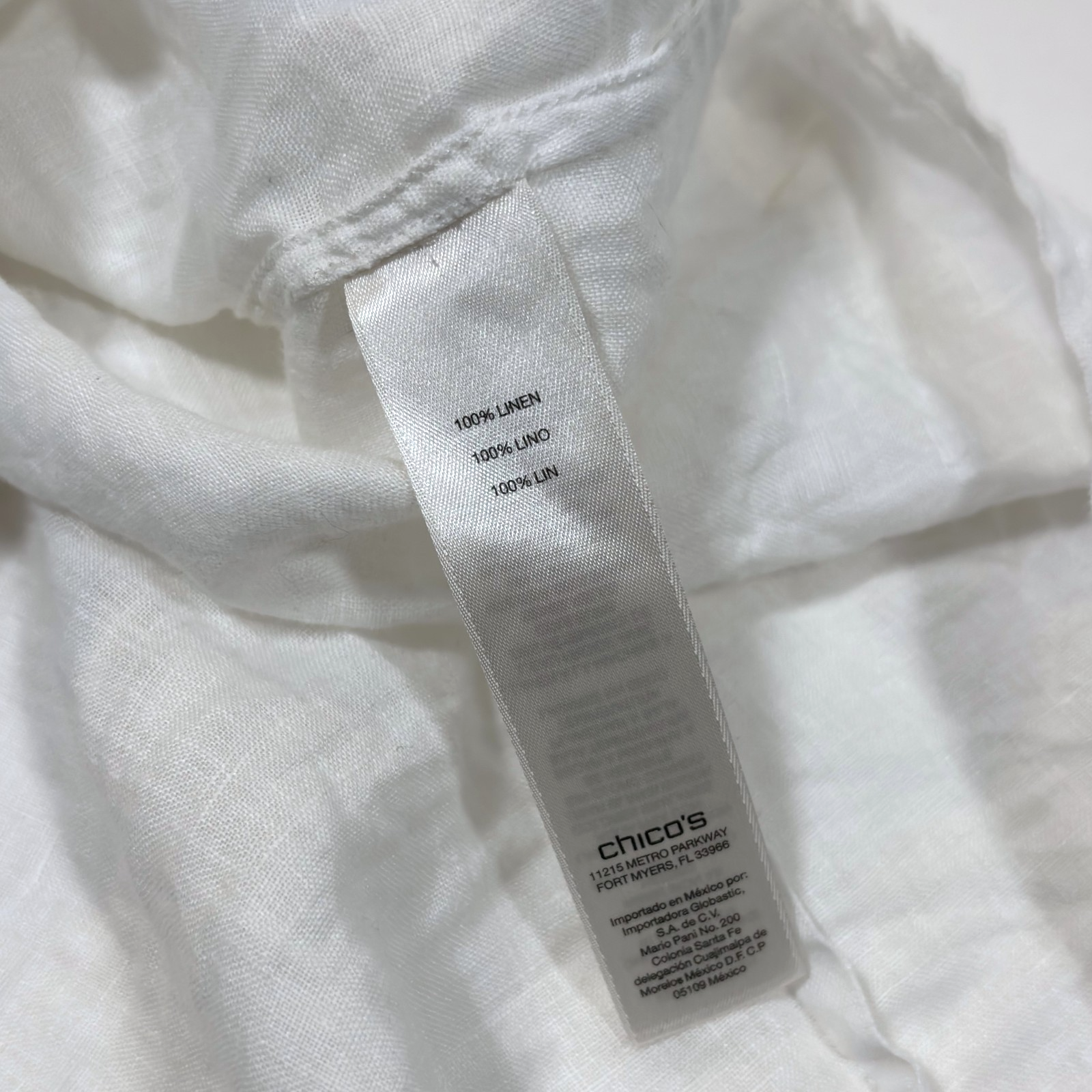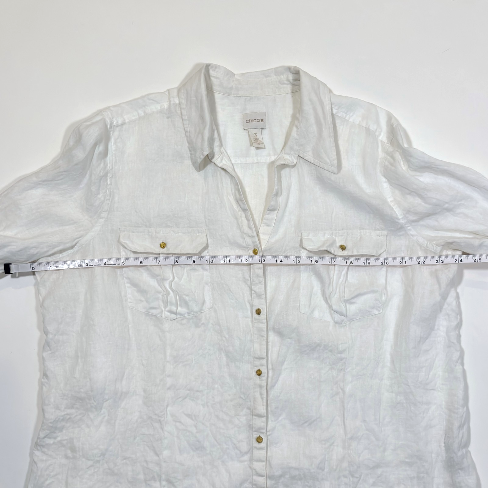 Chicos White Linen Button Down Shirt Gold Buttons - XL