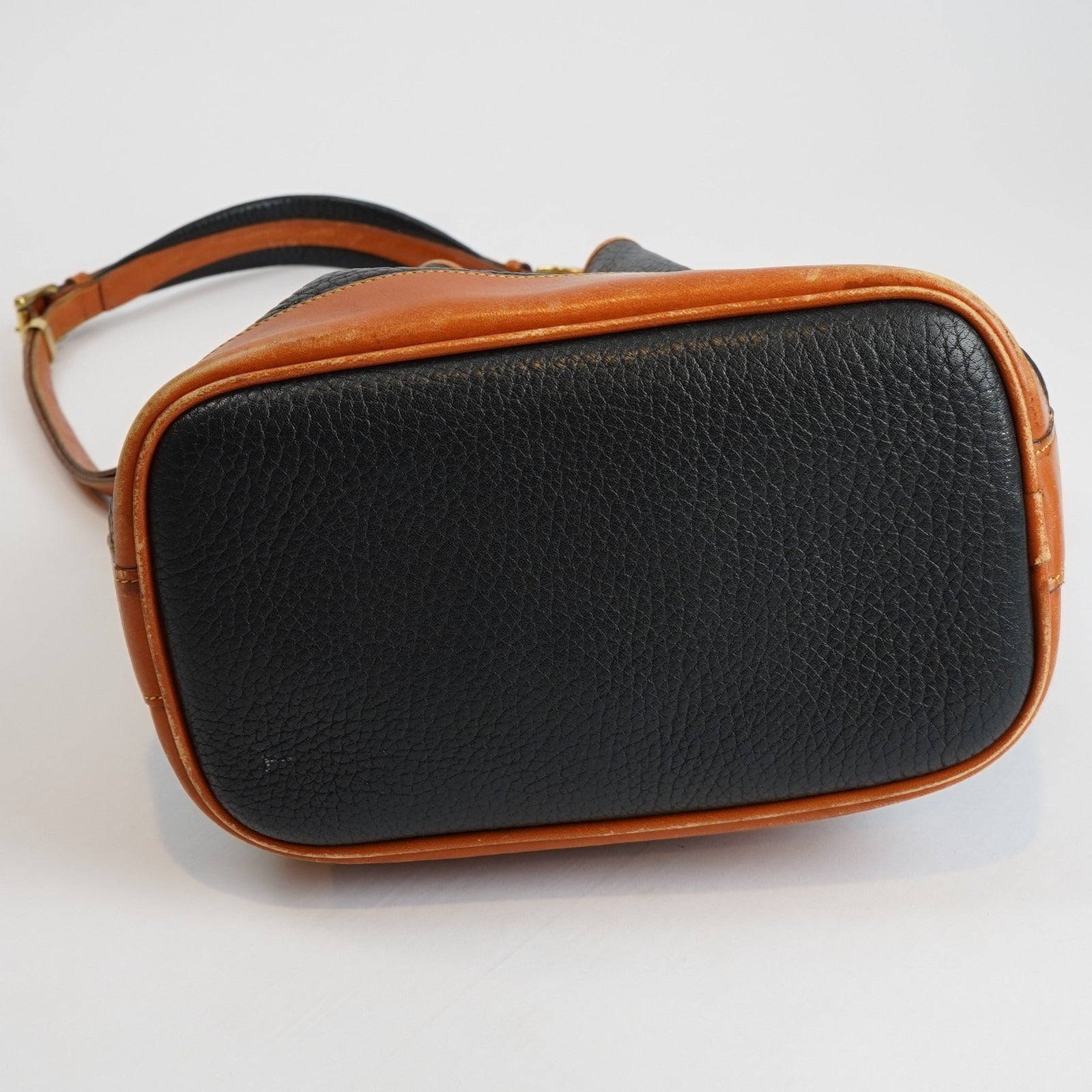 Dooney & Bourke Vintage Drawstring Bucket Bag Navy Brown Leather