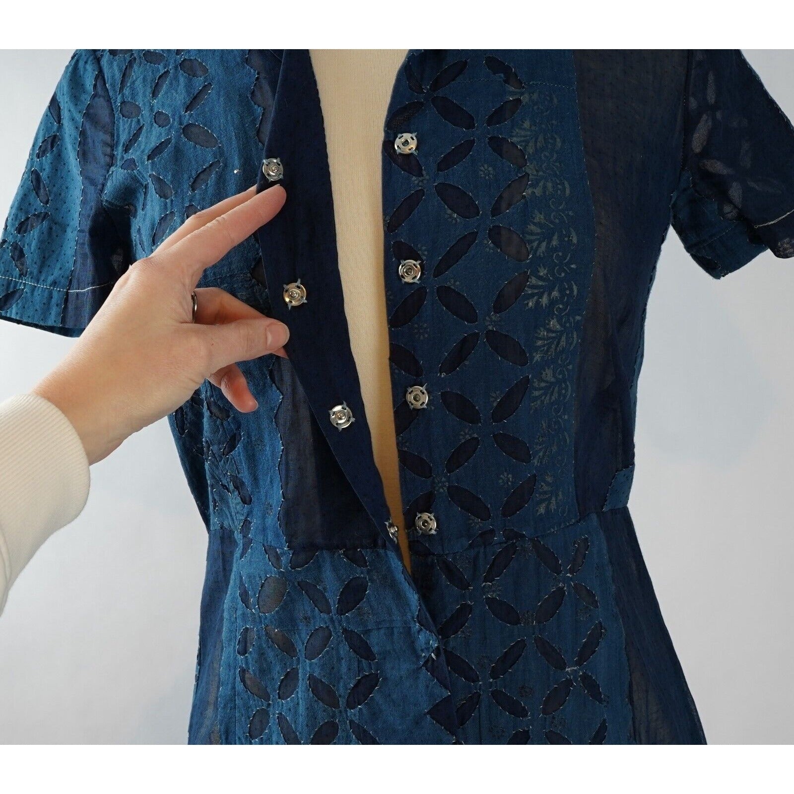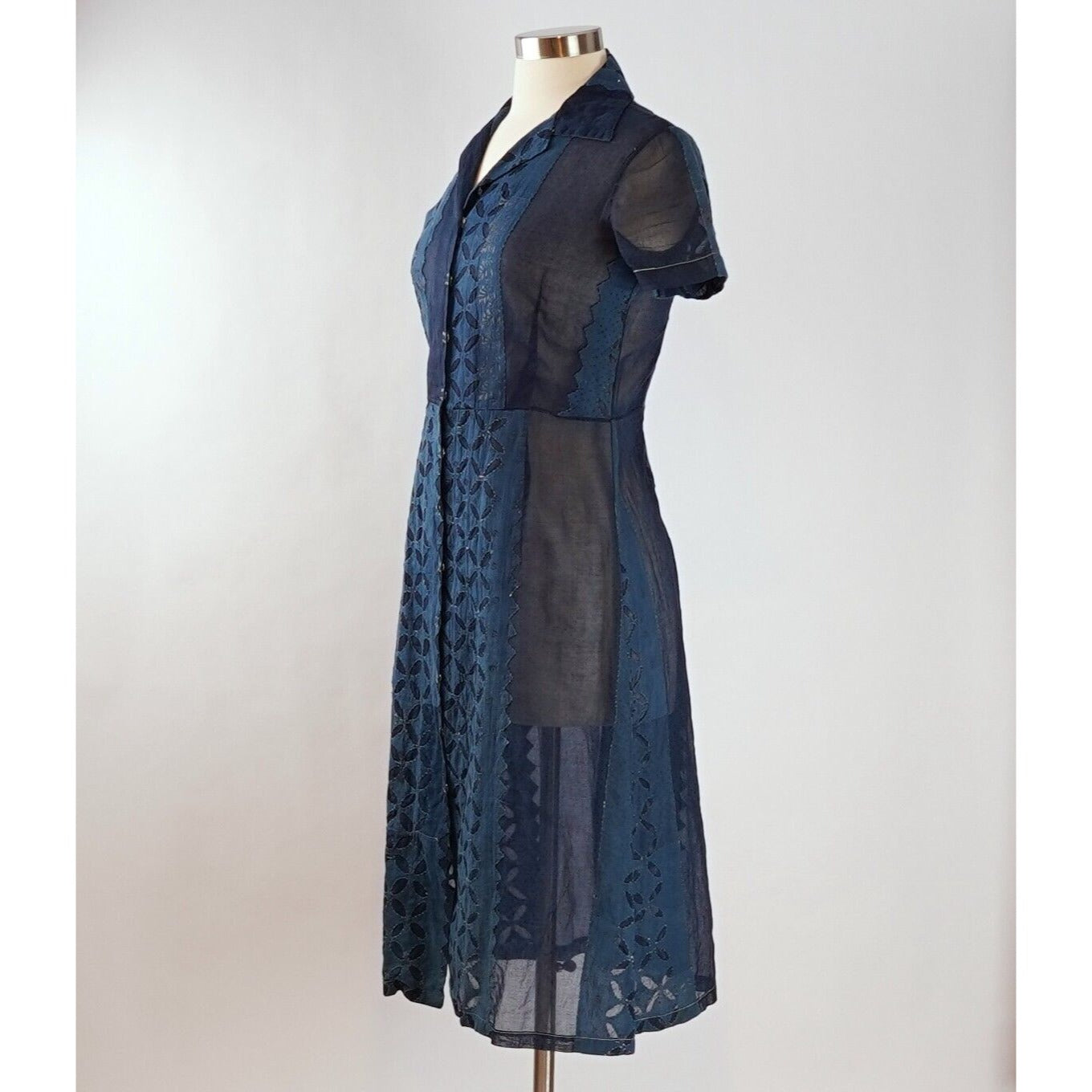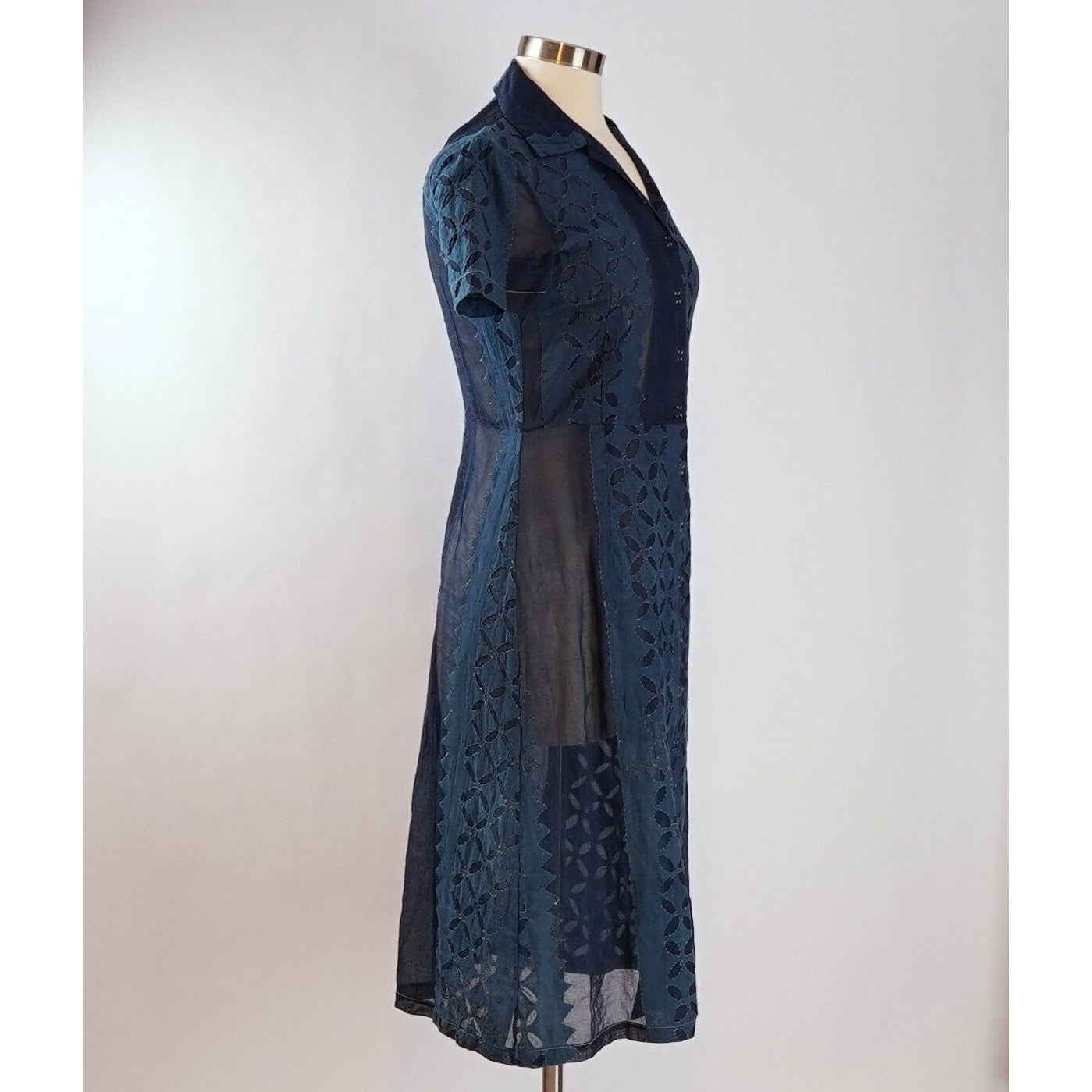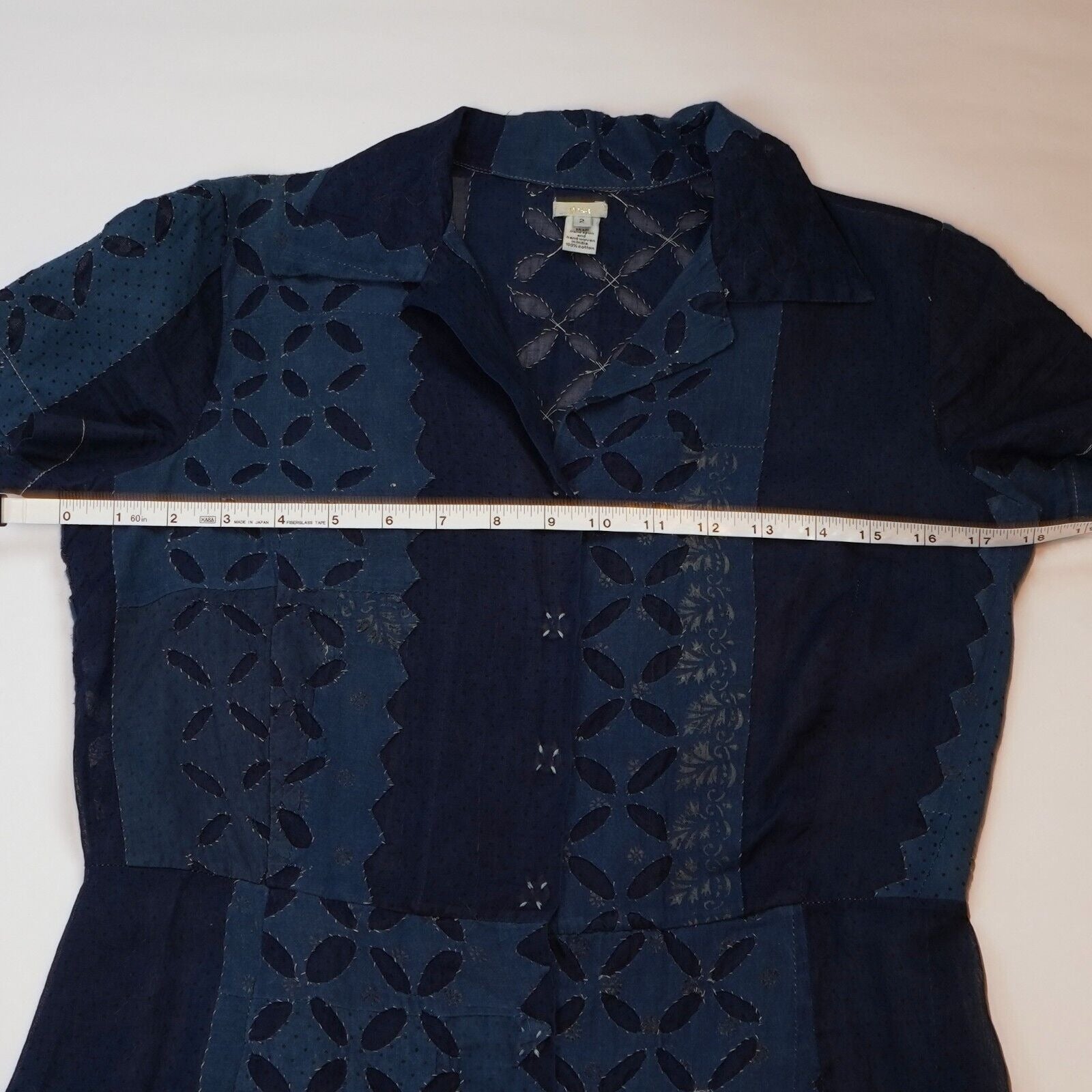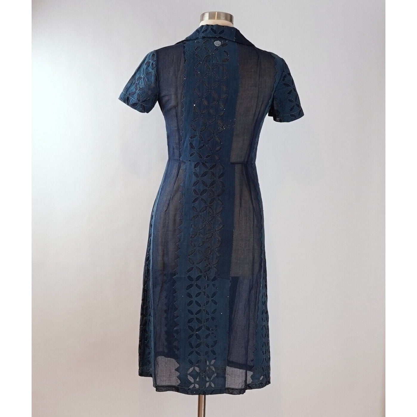 Dosa Navy Cotton Short Sleeve Button Up Dress - S/M