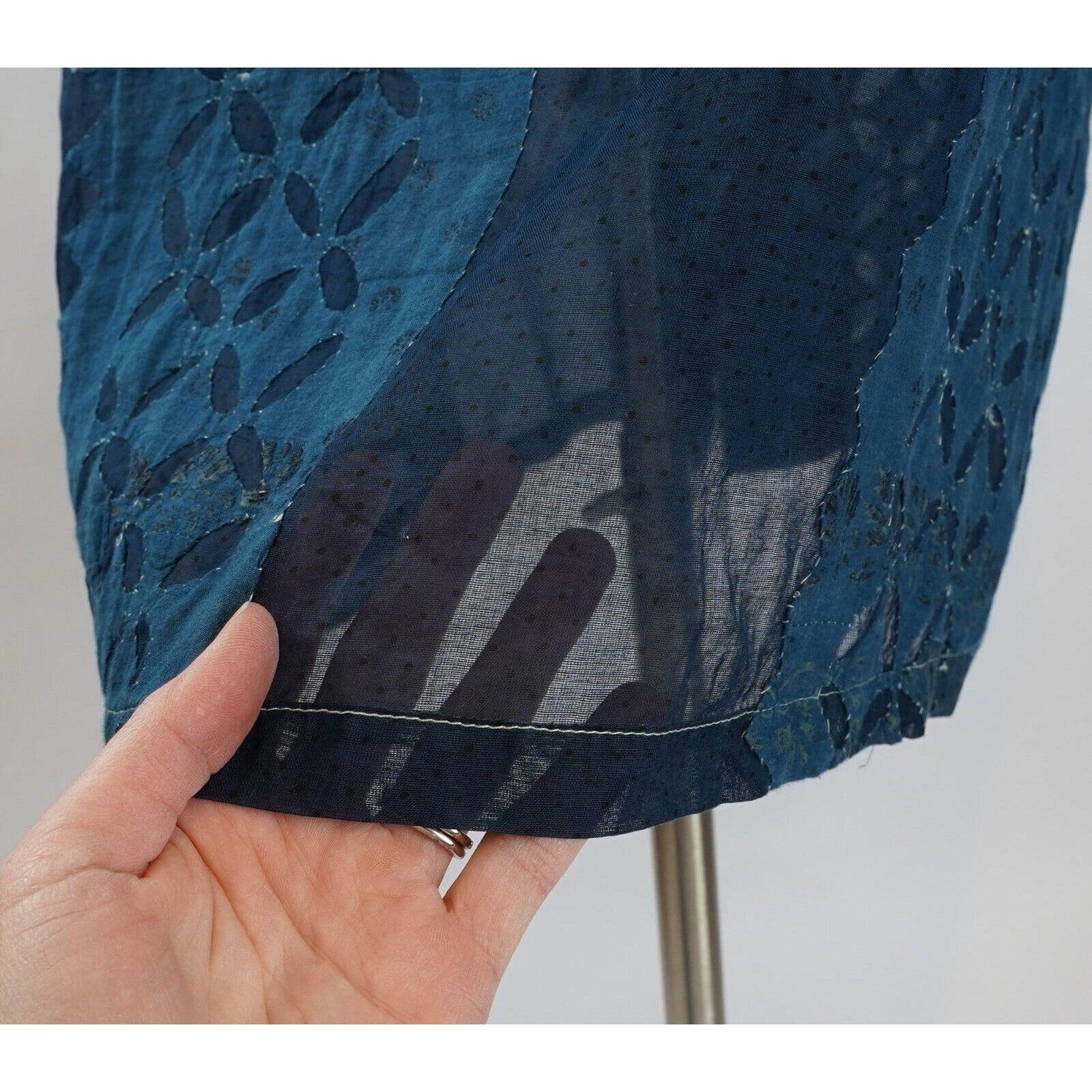 Patchwork style fabric is sheer in certain places