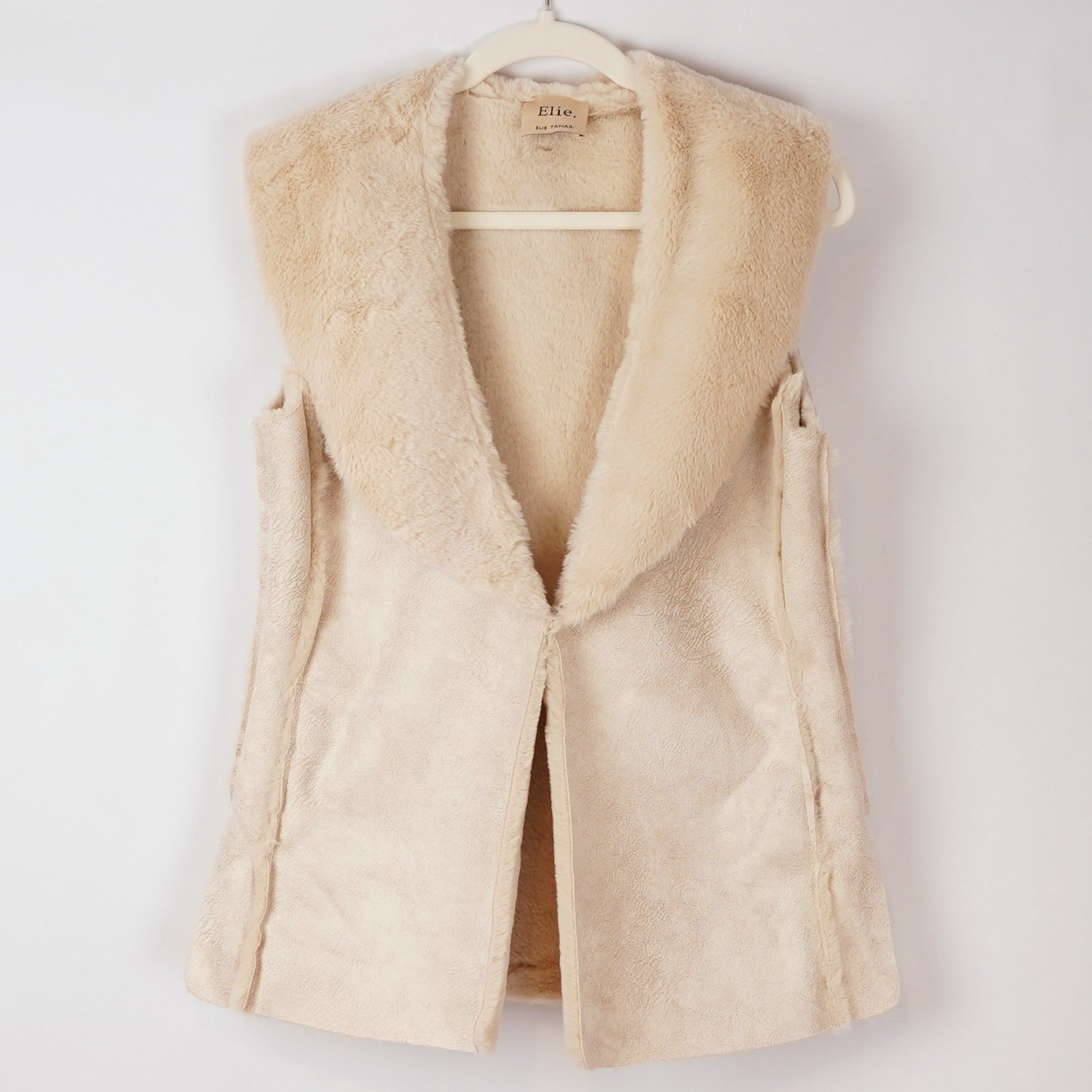 Elie Tahari Vegan Leather Fur Lined Vest Cream - S