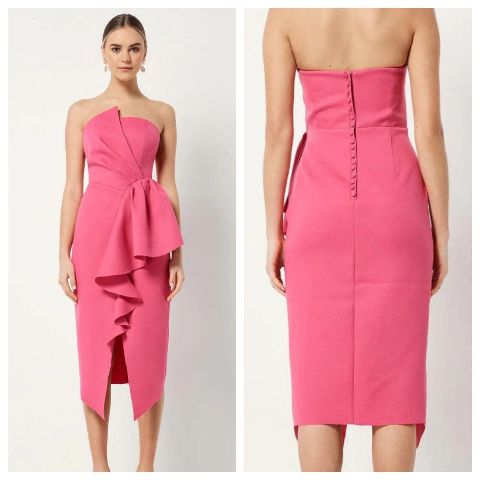 Elliatt Reception Dress Pink Fuchsia Cascade Ruffle Strapless - M