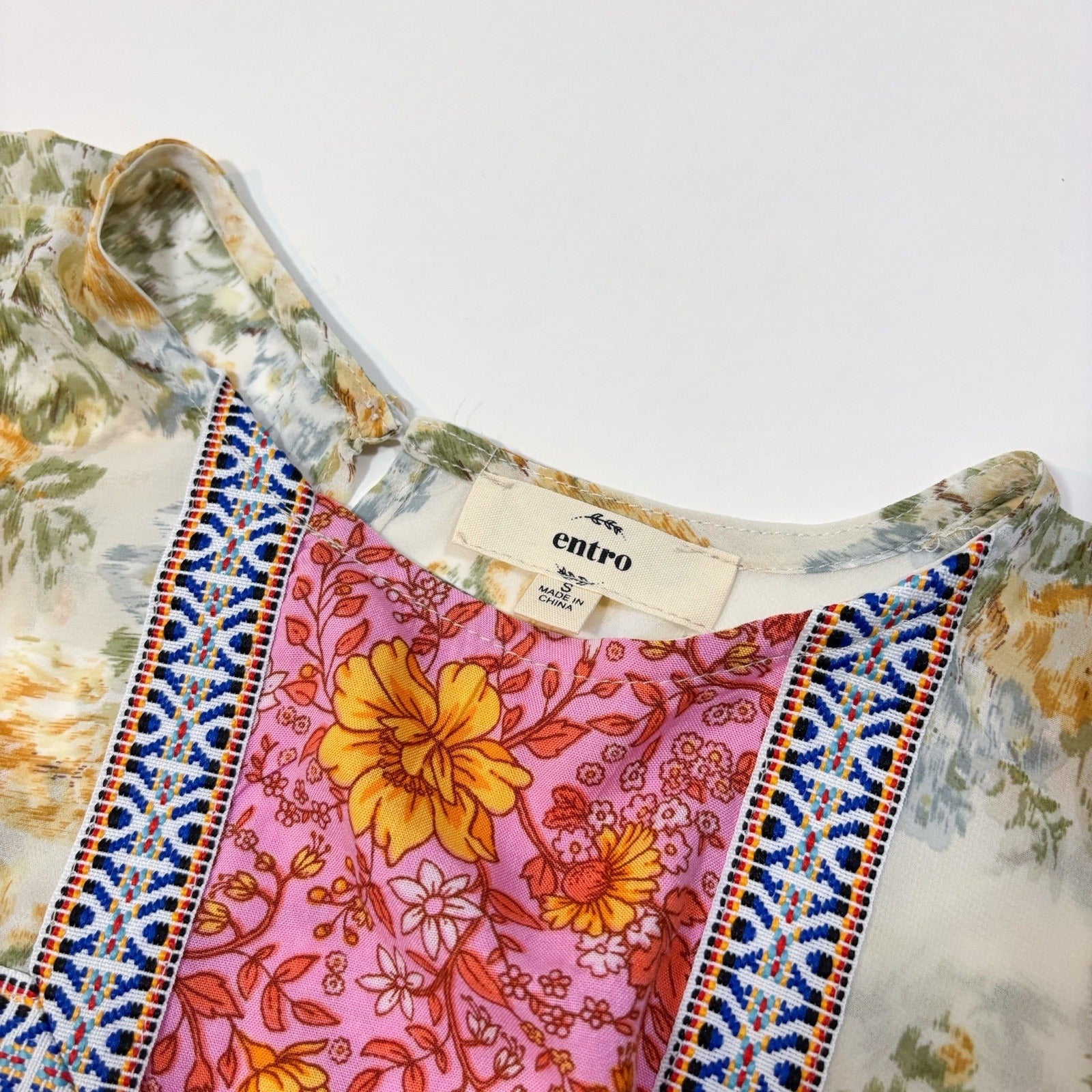 Entro Bright Floral Mixed Print Embroidered Blouse - S
