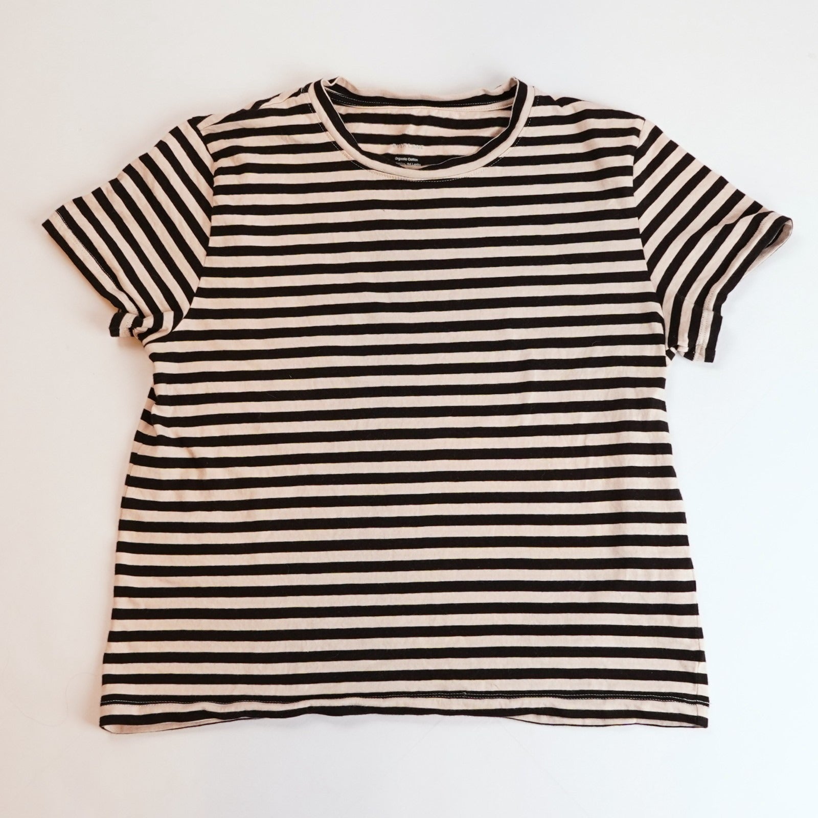Everlane Short Sleeve Crew Neck Tee Striped Black Bone Organic Cotton - XS