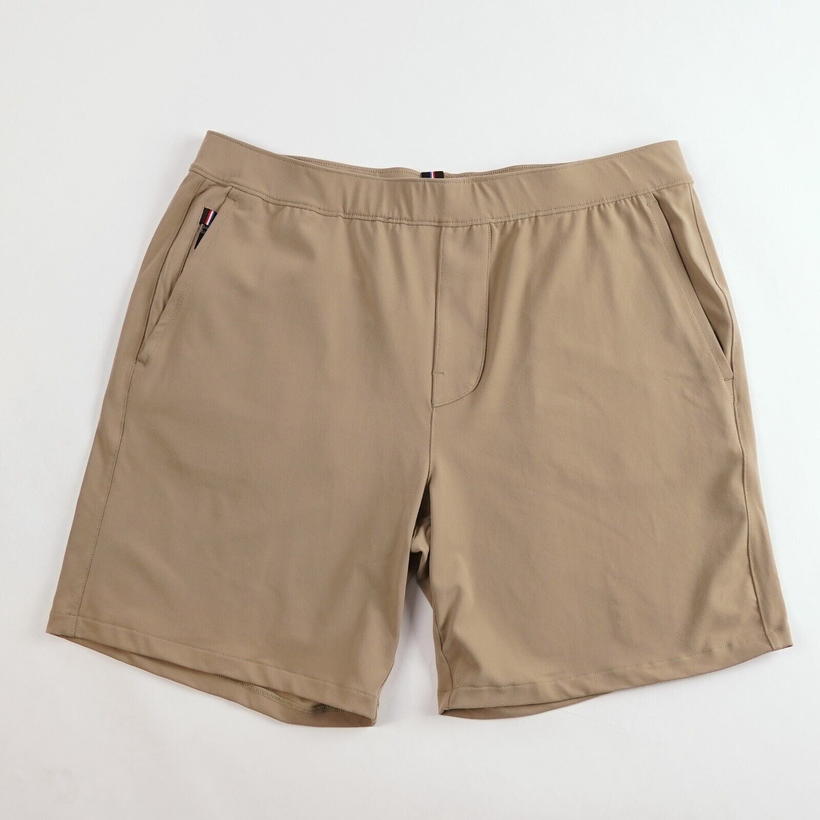 7 Inch InseamElastic waistTwo side hand pockets; back zip pocketFour way stretch fabric87% recycled polyester/13% spandexMachine wash