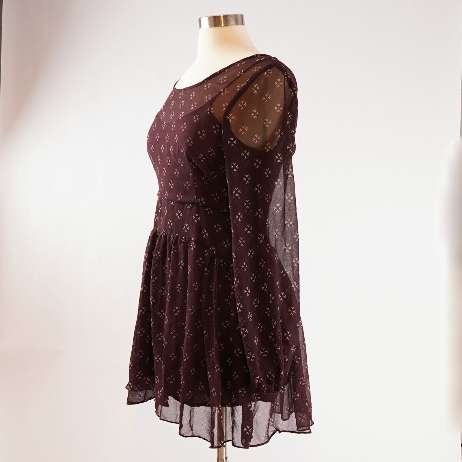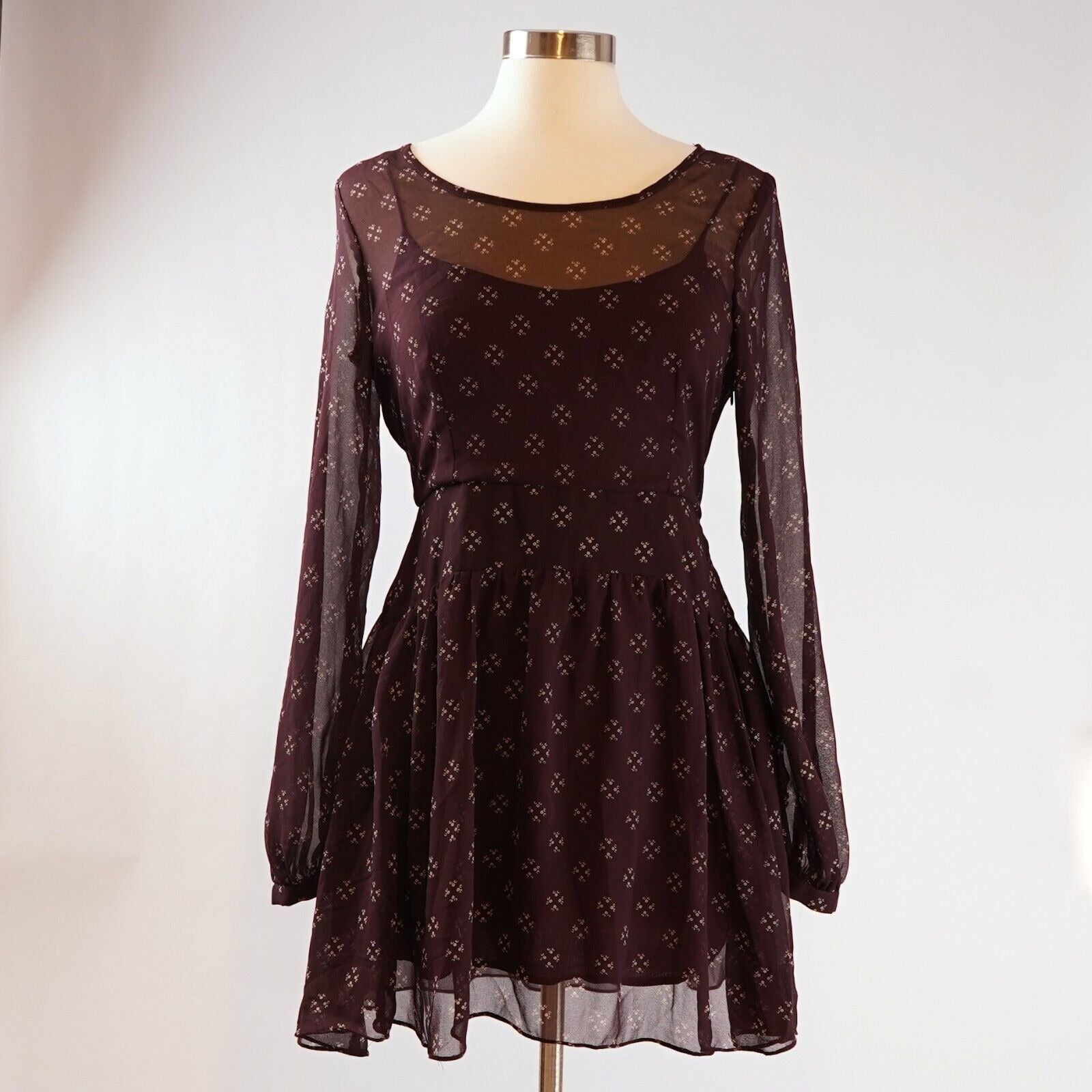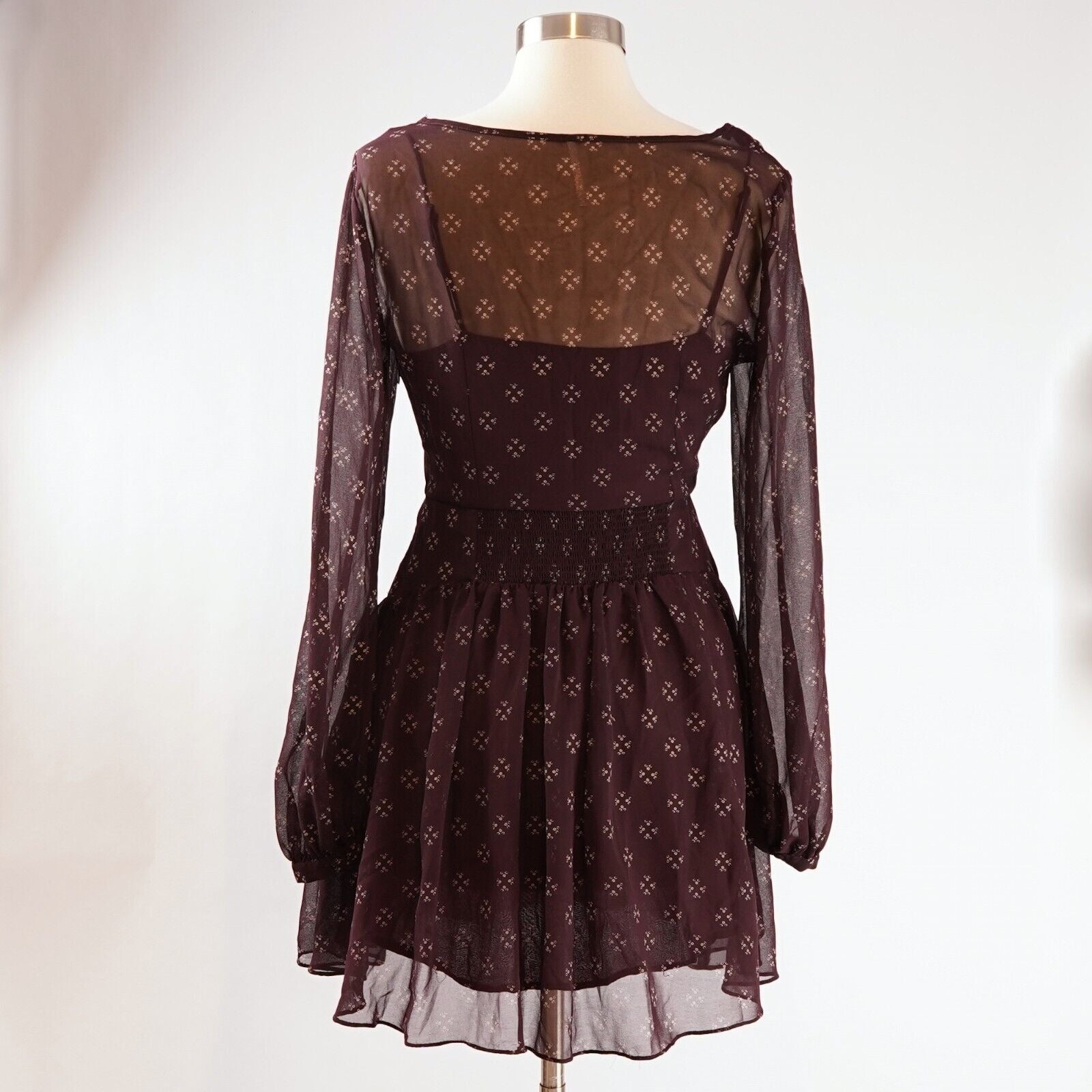 Free People "Baby Dee" Chiffon Long Sleeve Fit & Flare Dress - S