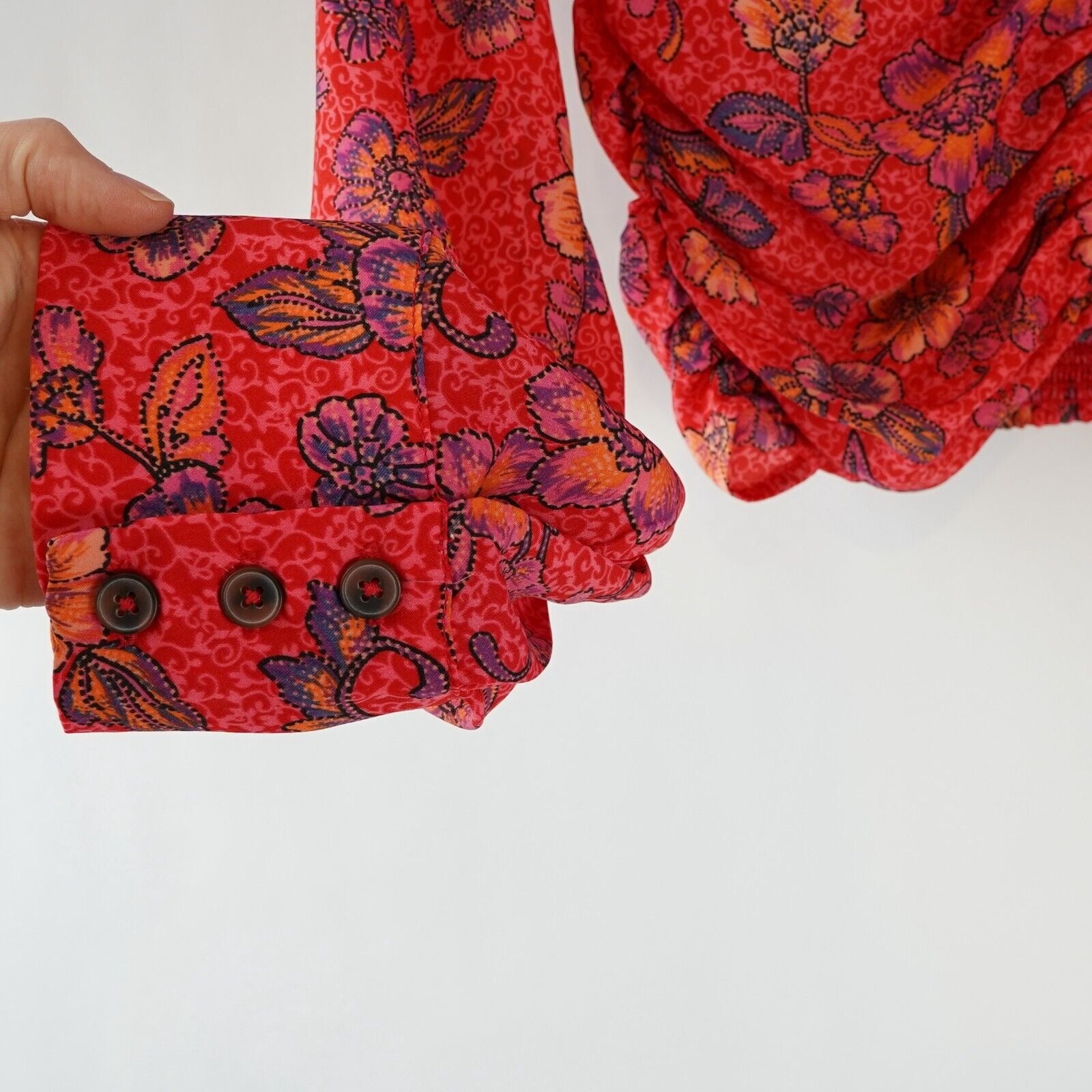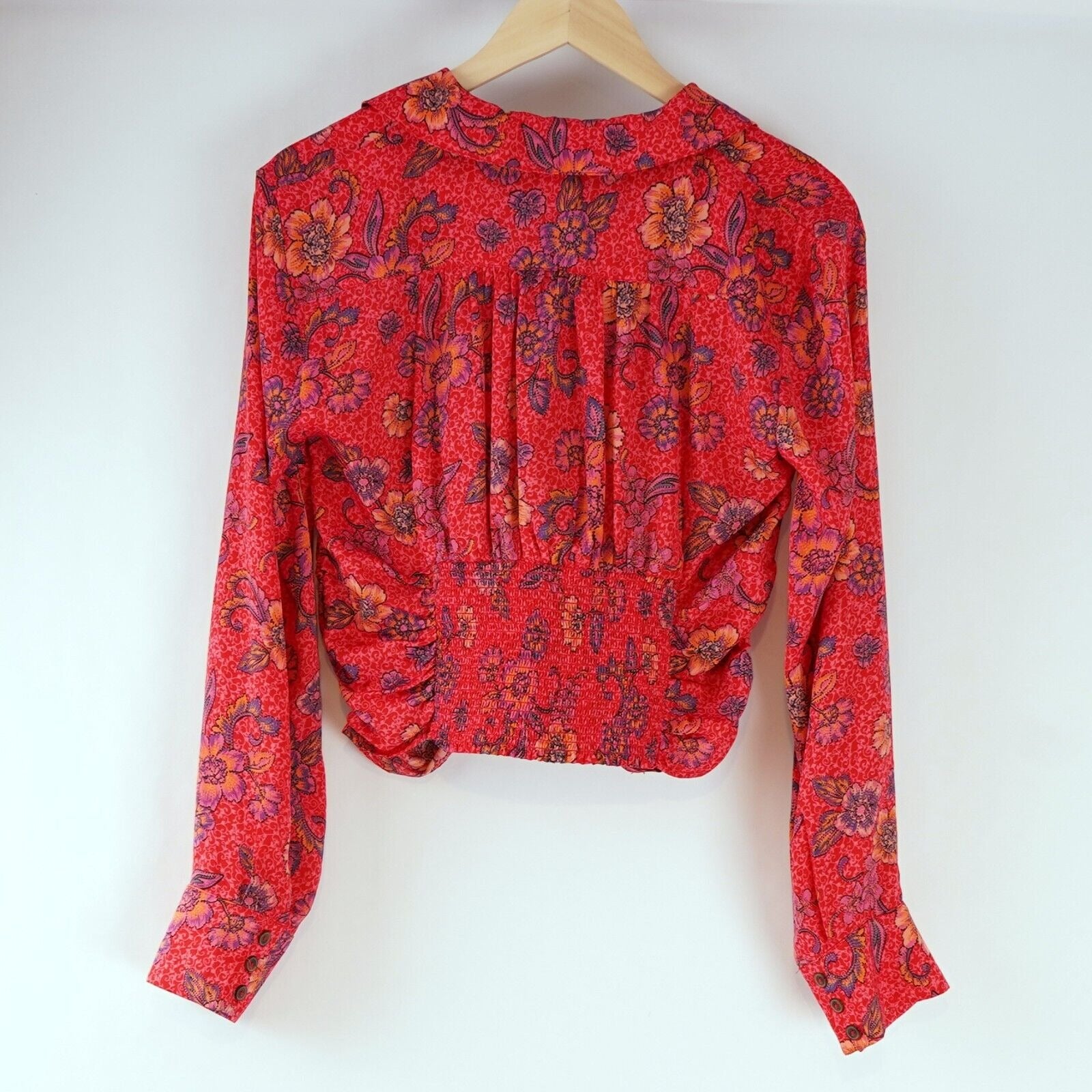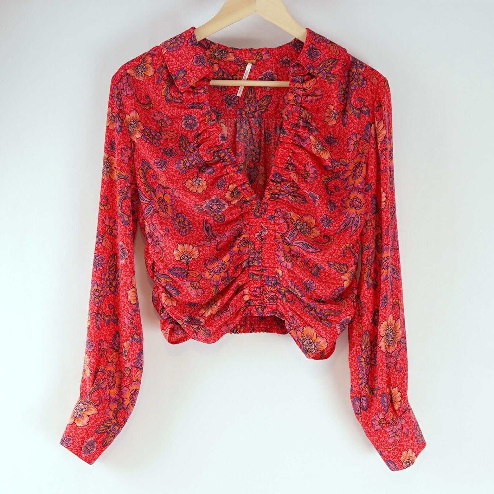 Free People Got You Floral Cinch Blouse in Ruby - S