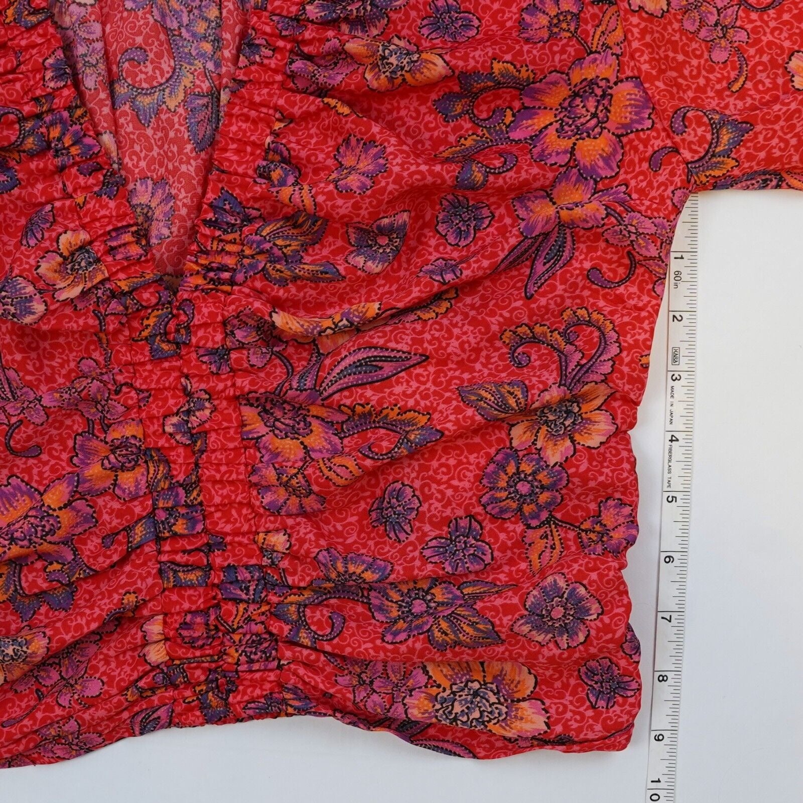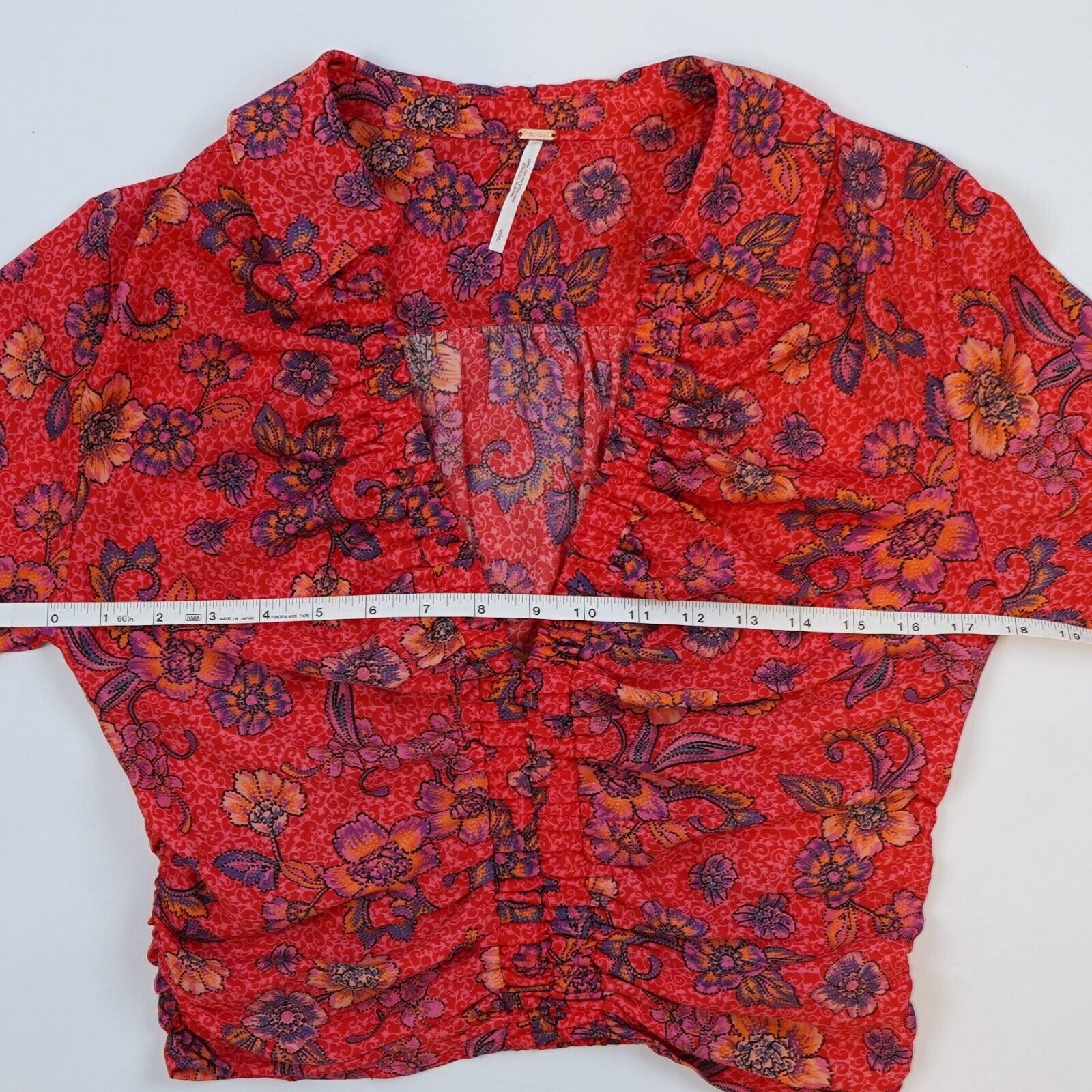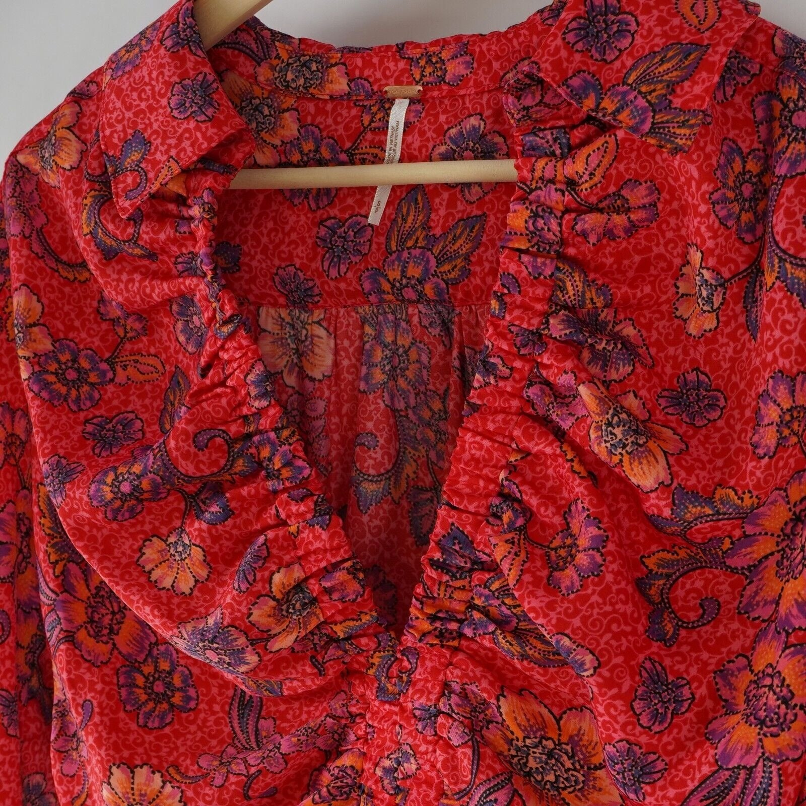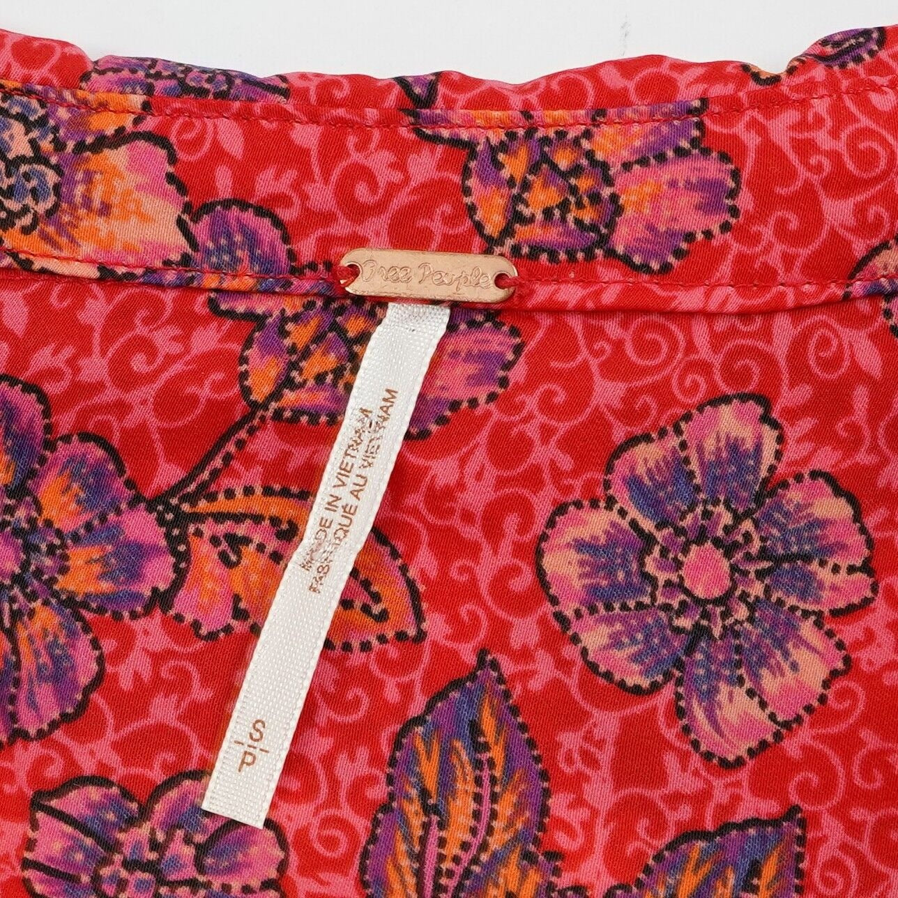 Free People Got You Floral Cinch Blouse in Ruby - S