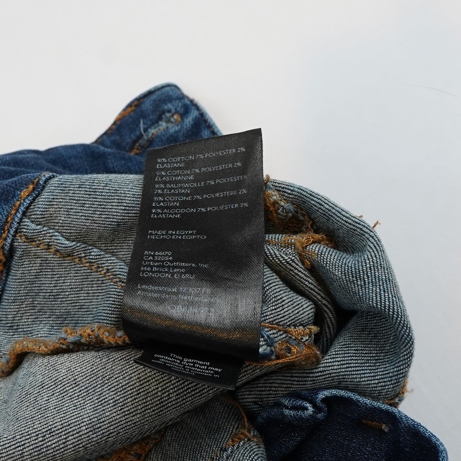 Features: Exaggerated yoking throughout, stretch denim fabrication, exposed button fly, flattering flat front and back