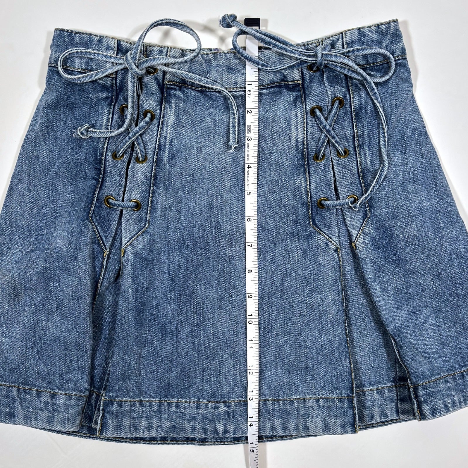 Free People Lace Up A-Line Pleated Denim Mini Skirt - 4