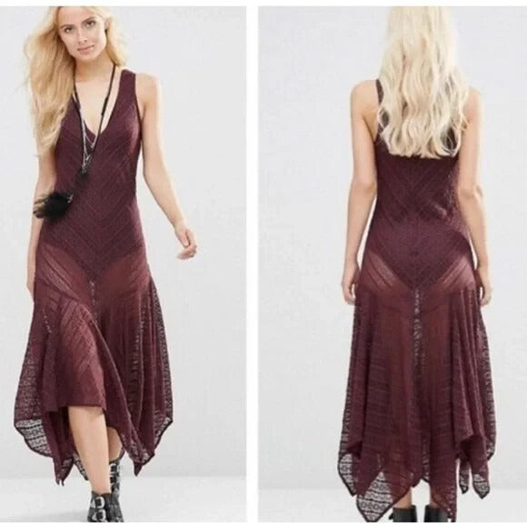 Free People Lila Lace Asymmetric Slip Dress Plum Purple - S
