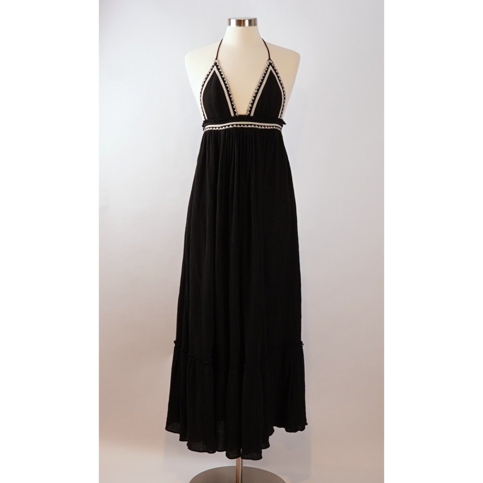 Free People Love Shakin Triangle Halter Maxi Dress Black Cream - XS