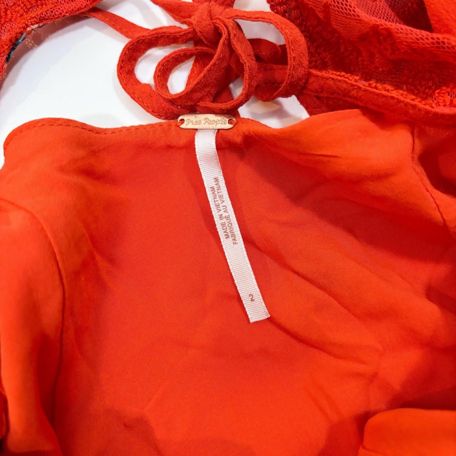 Free People Mockingbird Coral Red Floral Backless Mini Dress