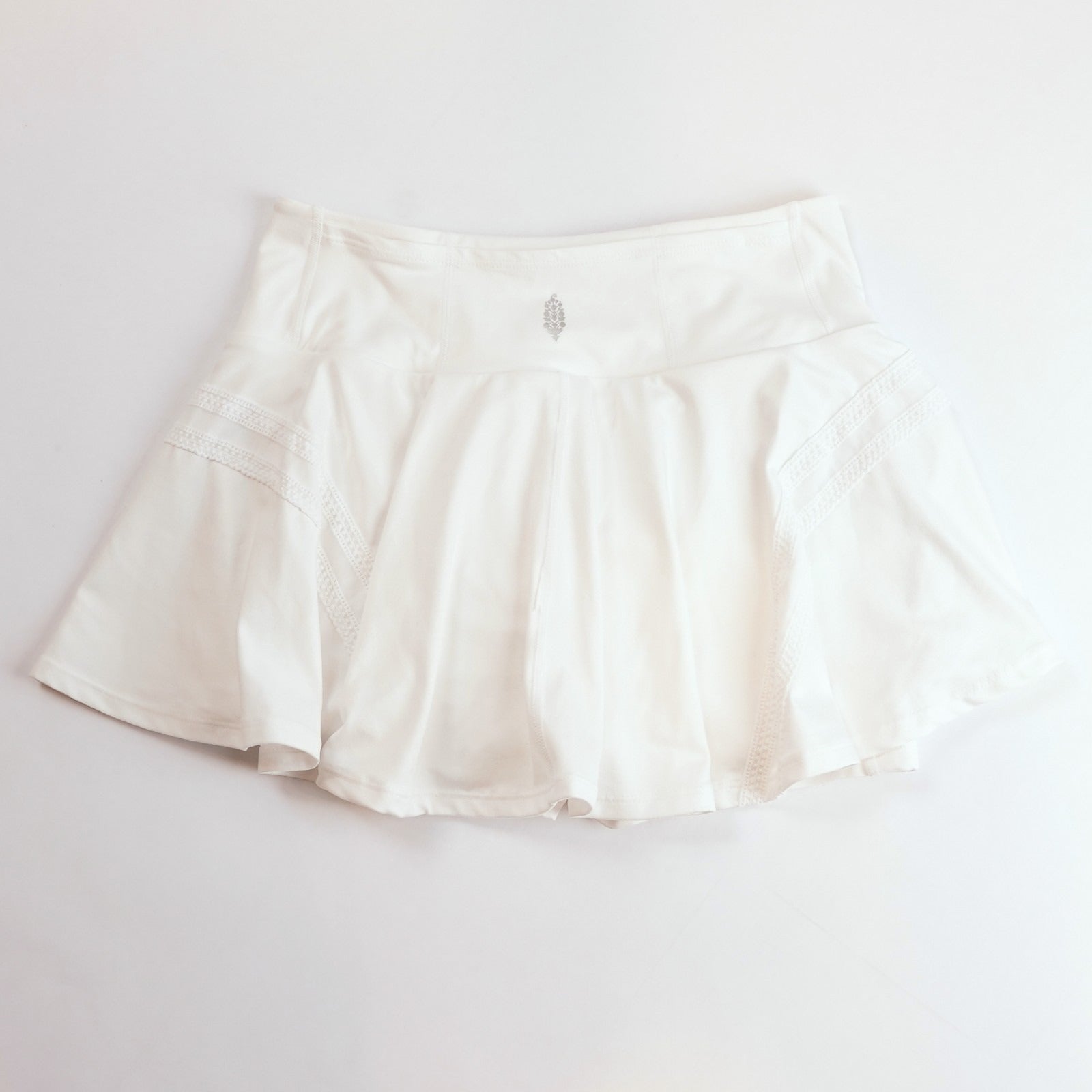 Sporty and sweet, this active skort features a fun and flowy skirt over skim-fitting shorts with a high-rise waistband with a flirty pleated design.