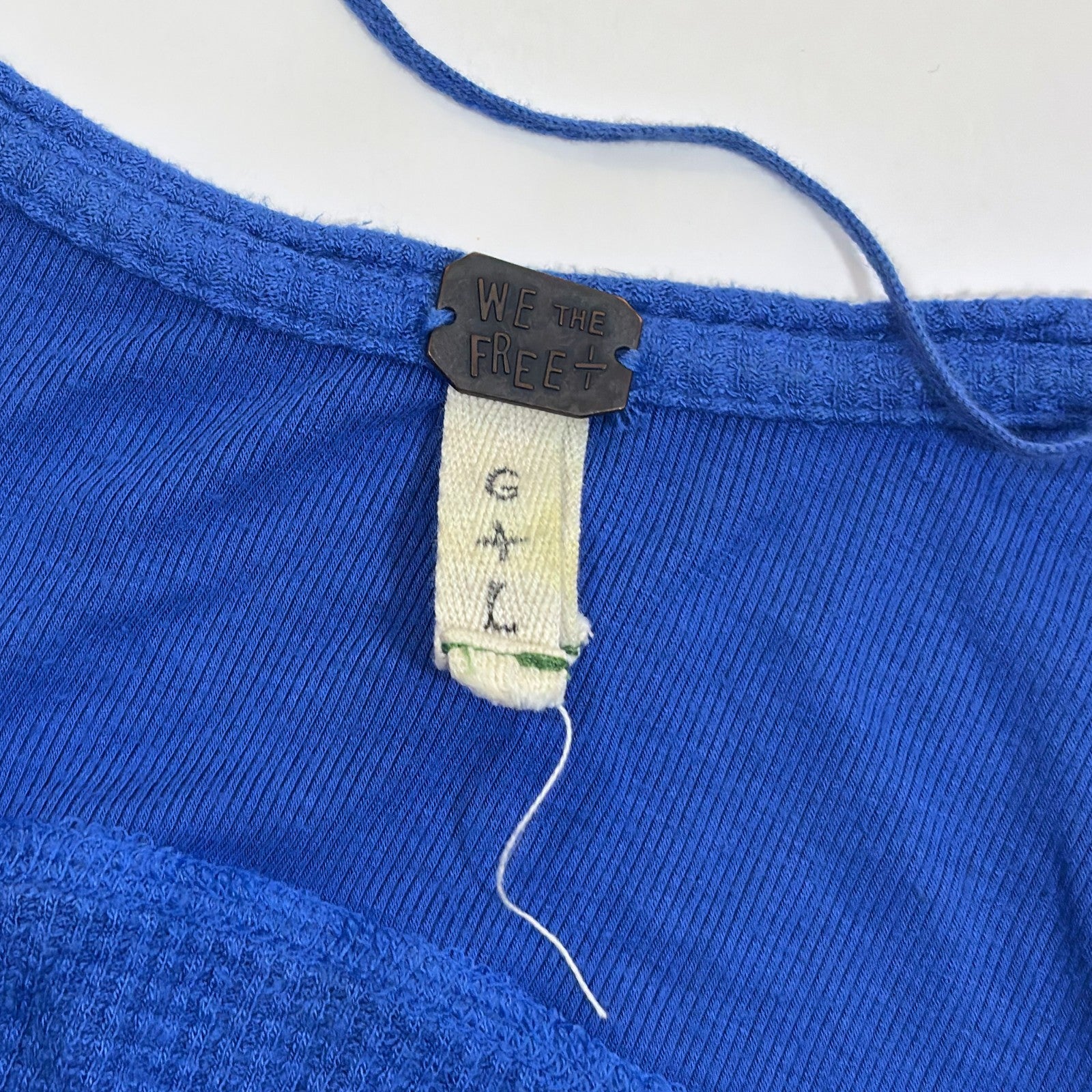 Free People Thermal Waffle Knit Scoop Neck Long Sleeve Shirt Top Tunic Blue - L