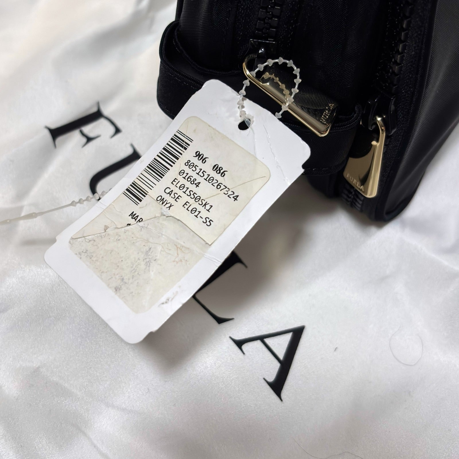 Furla Tessuto Nylon Travel Cosmetic Bag Pouch Black Gold