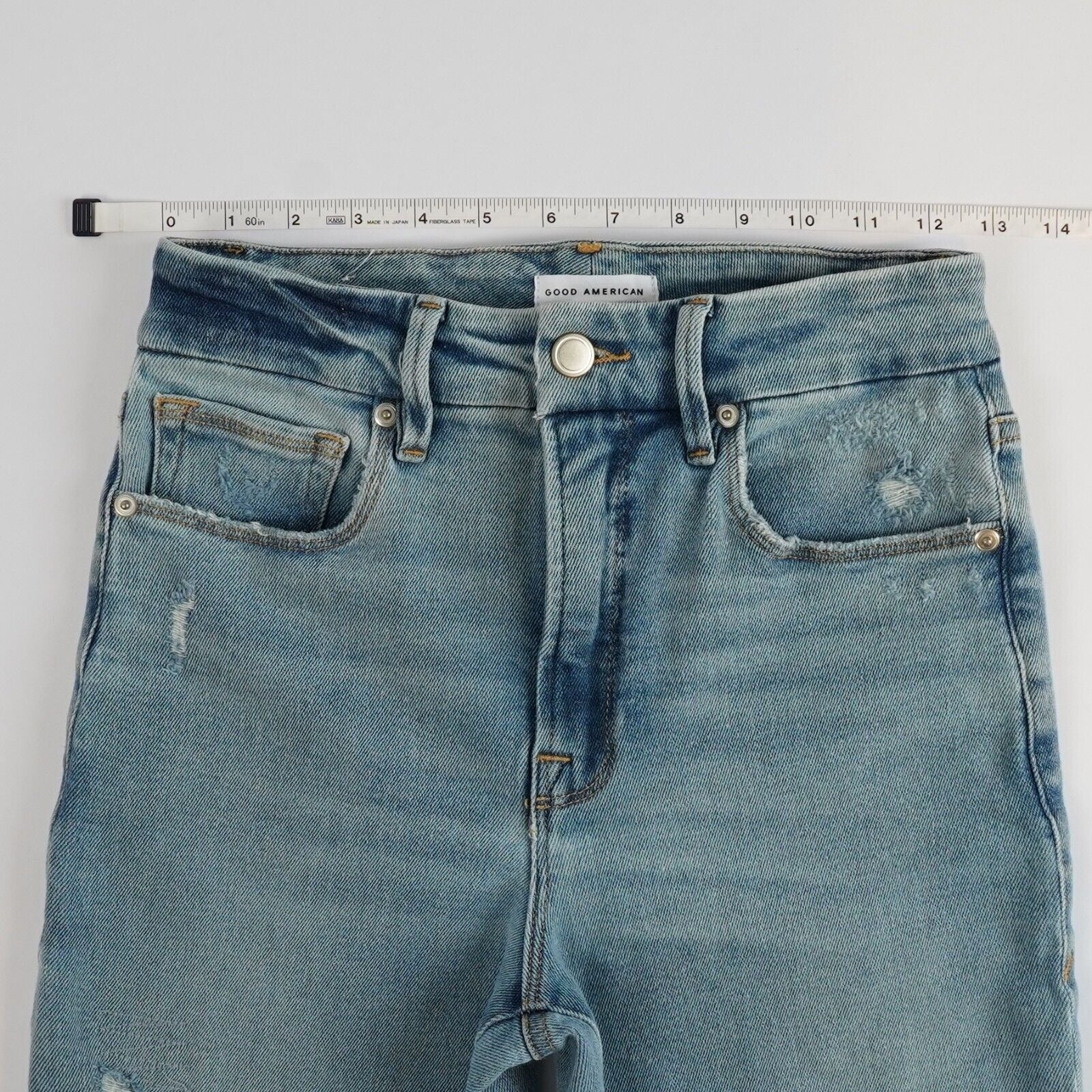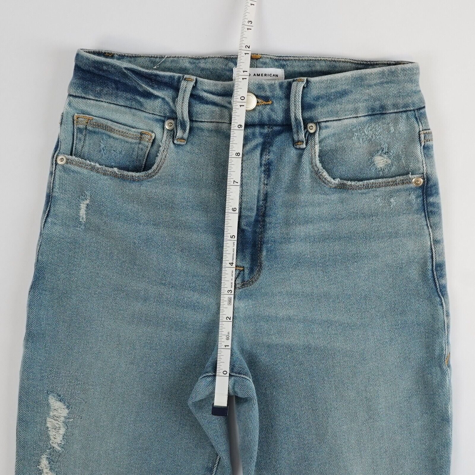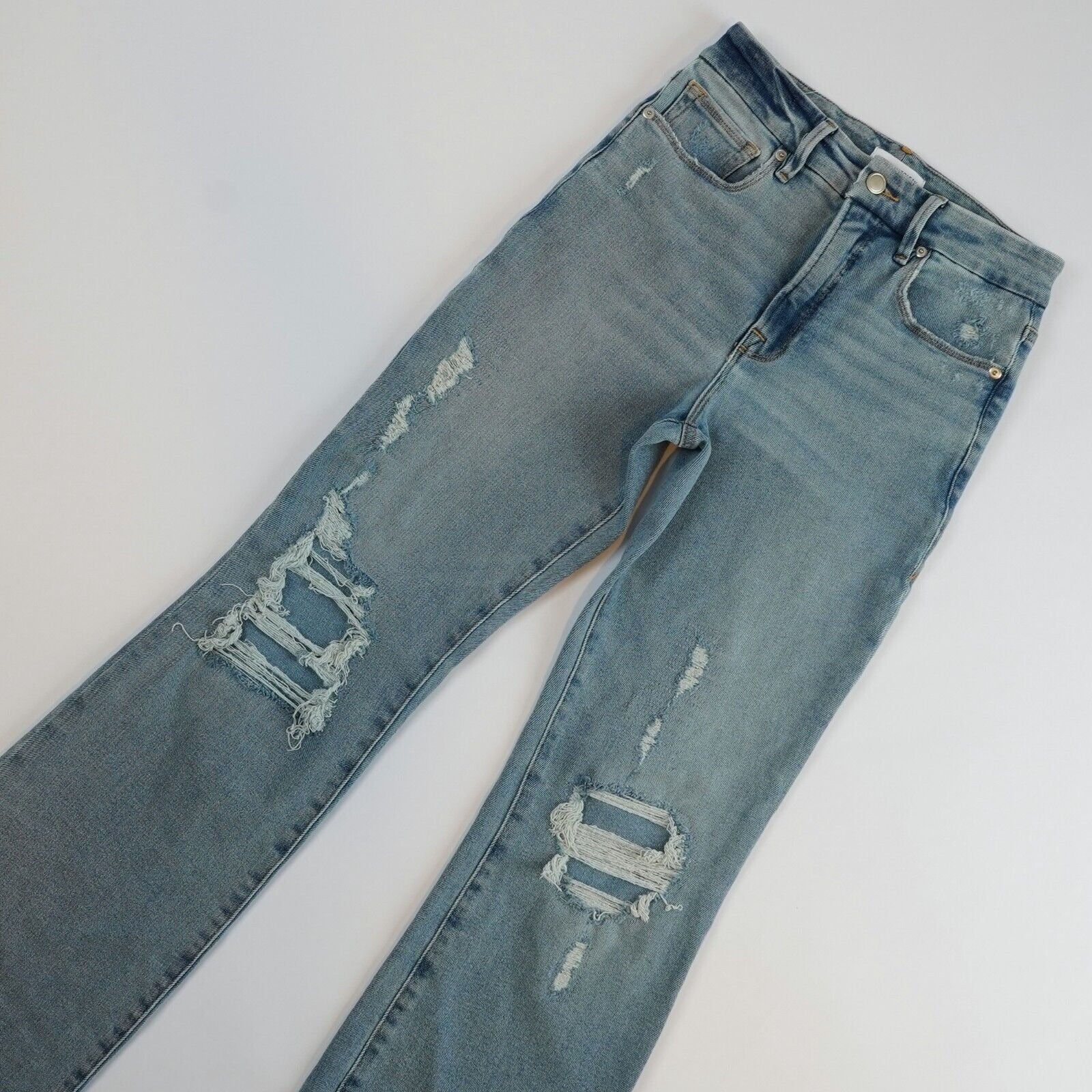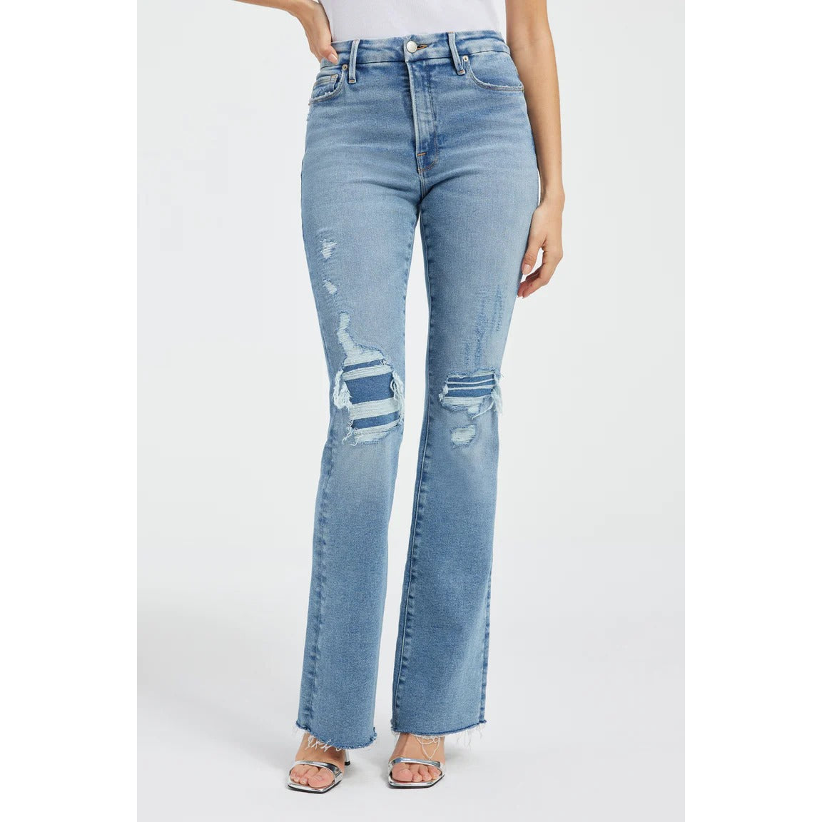 Good American Good Classic Distressed Light Wash Bootcut Jeans - 6/28
