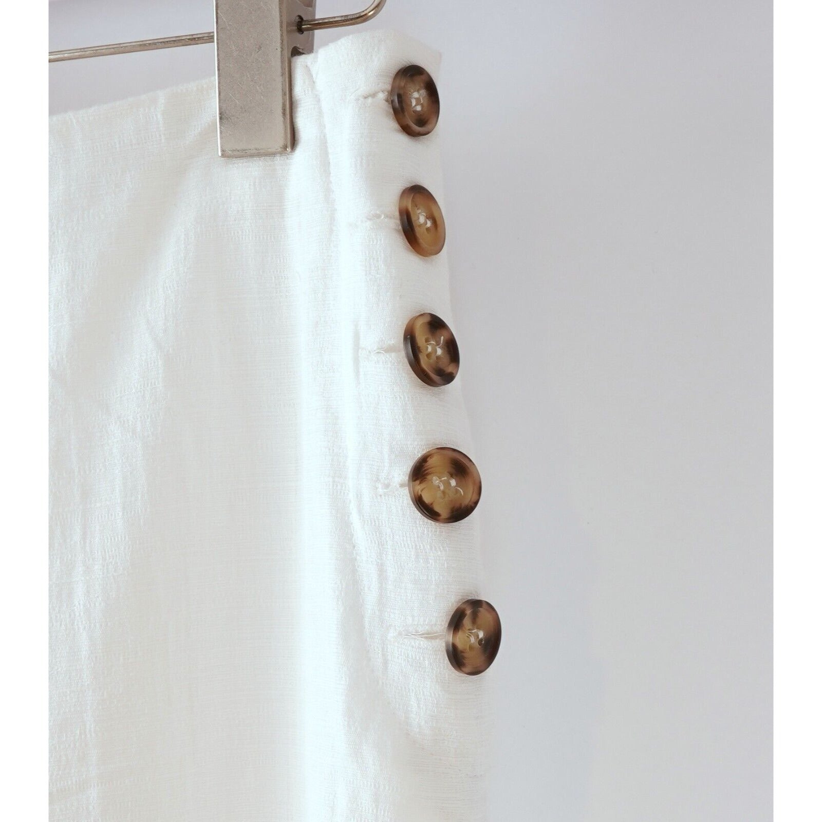 Tortoiseshell buttons do up the sides of softly textured cotton trousers cut with a cropped, wide-leg silhouette. Side button closure. Elastic waistband (in back only). 100% cotton