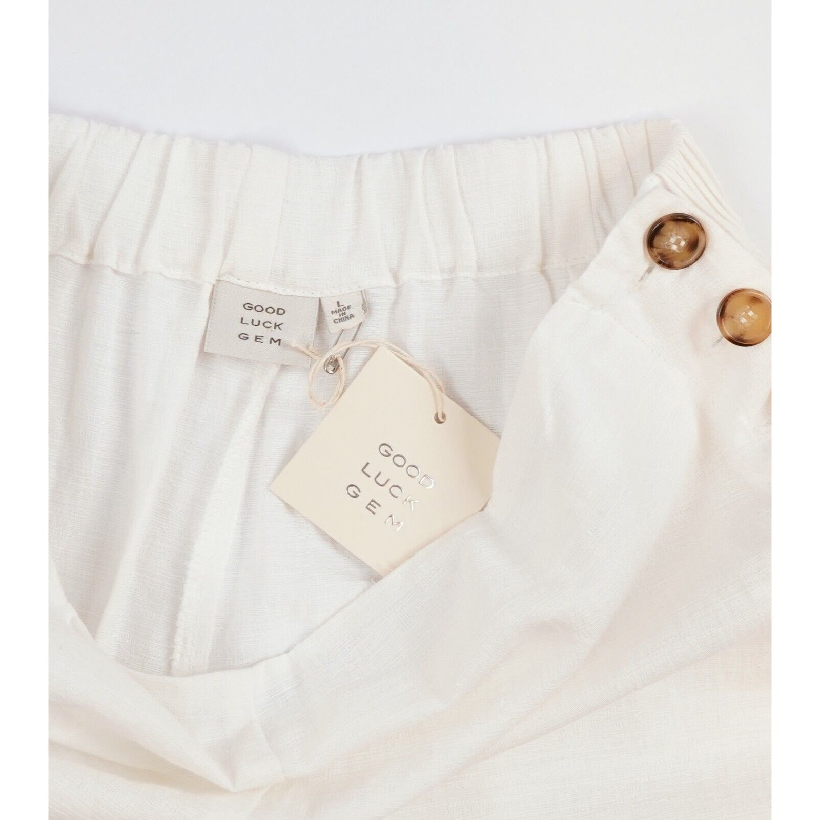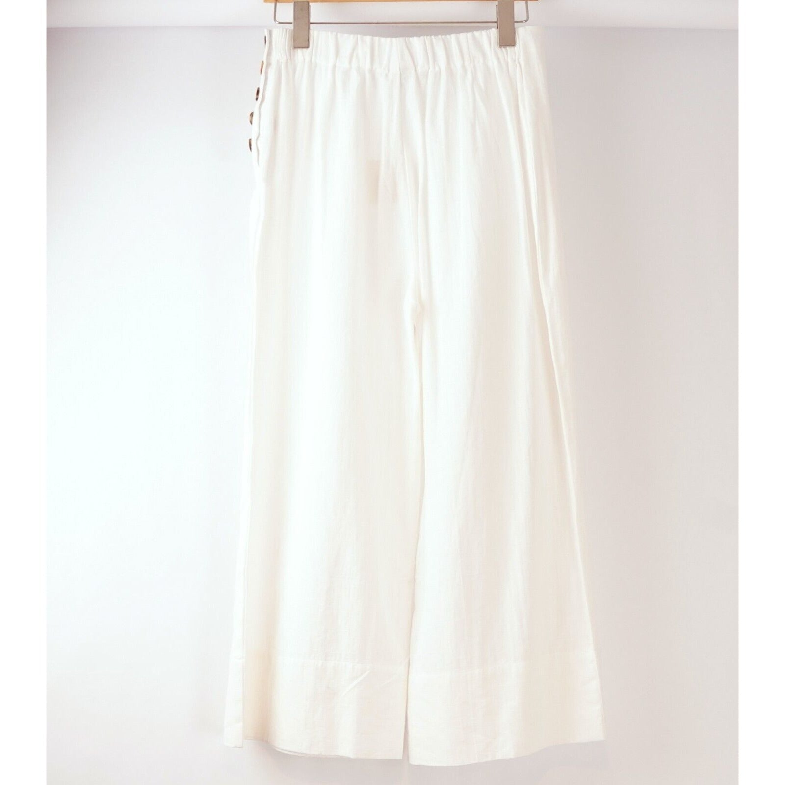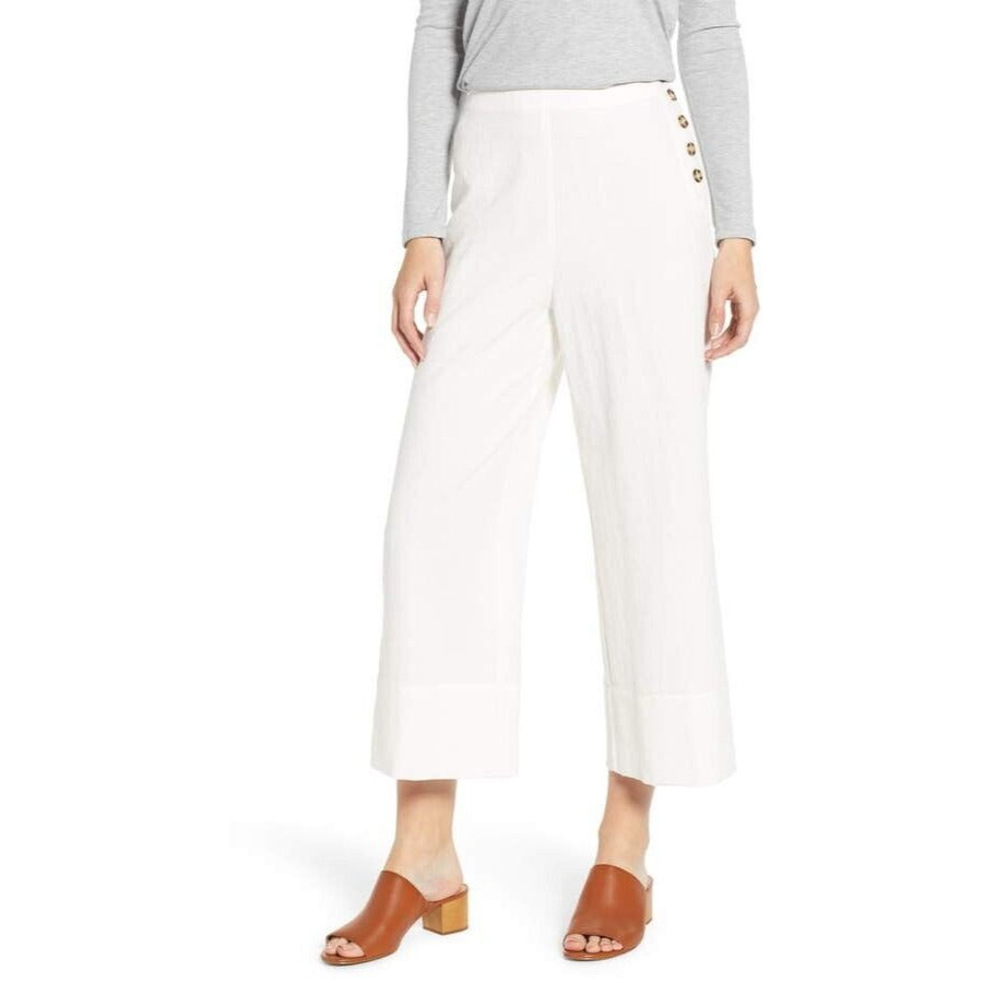 GOOD LUCK GEM Wide Leg Button Detail White Crop Pants - L
