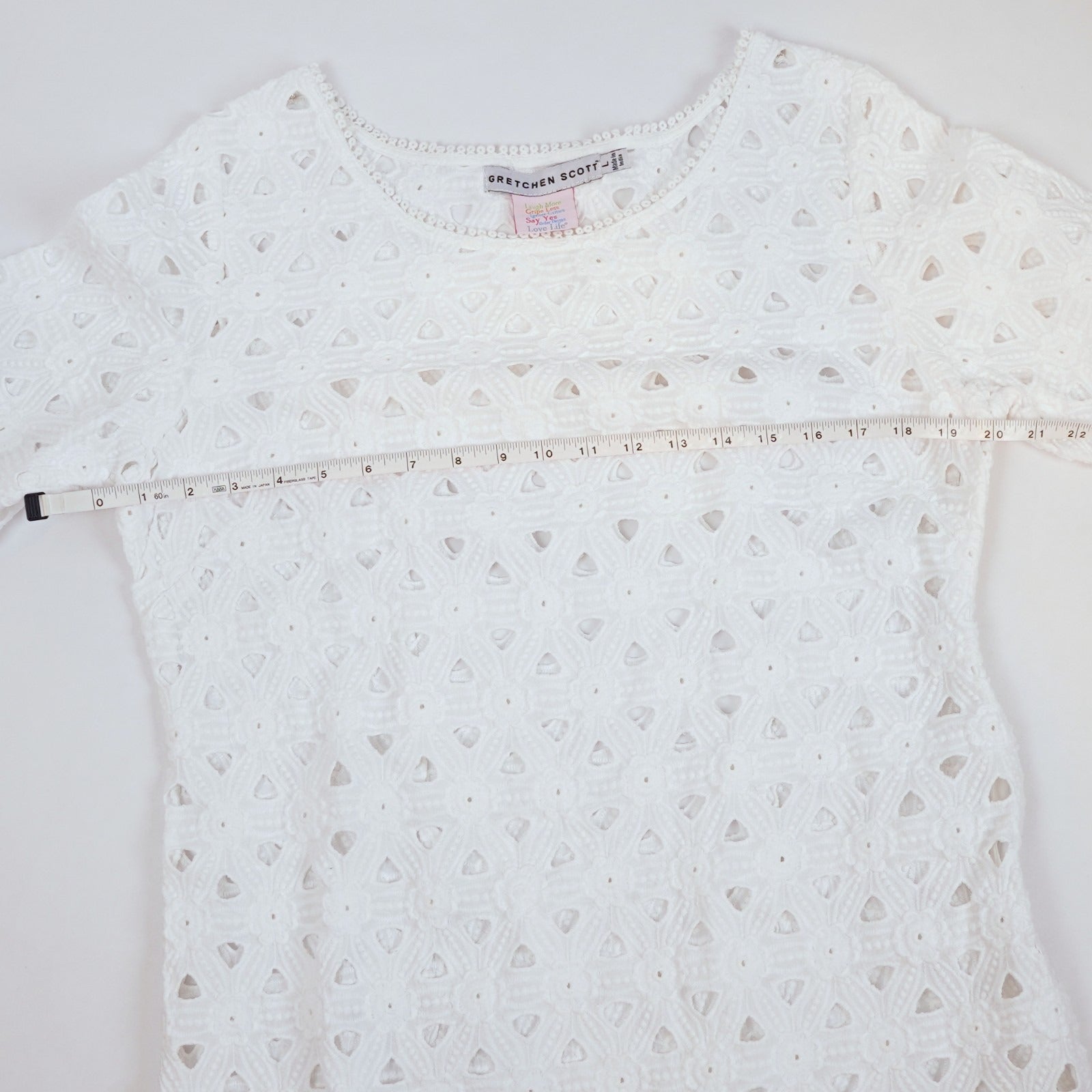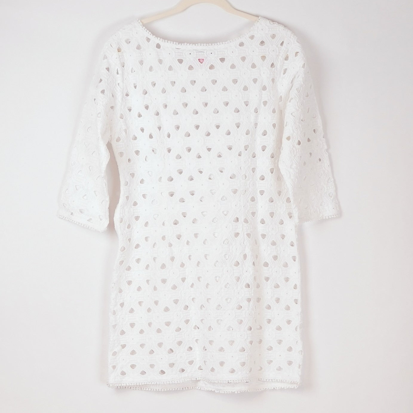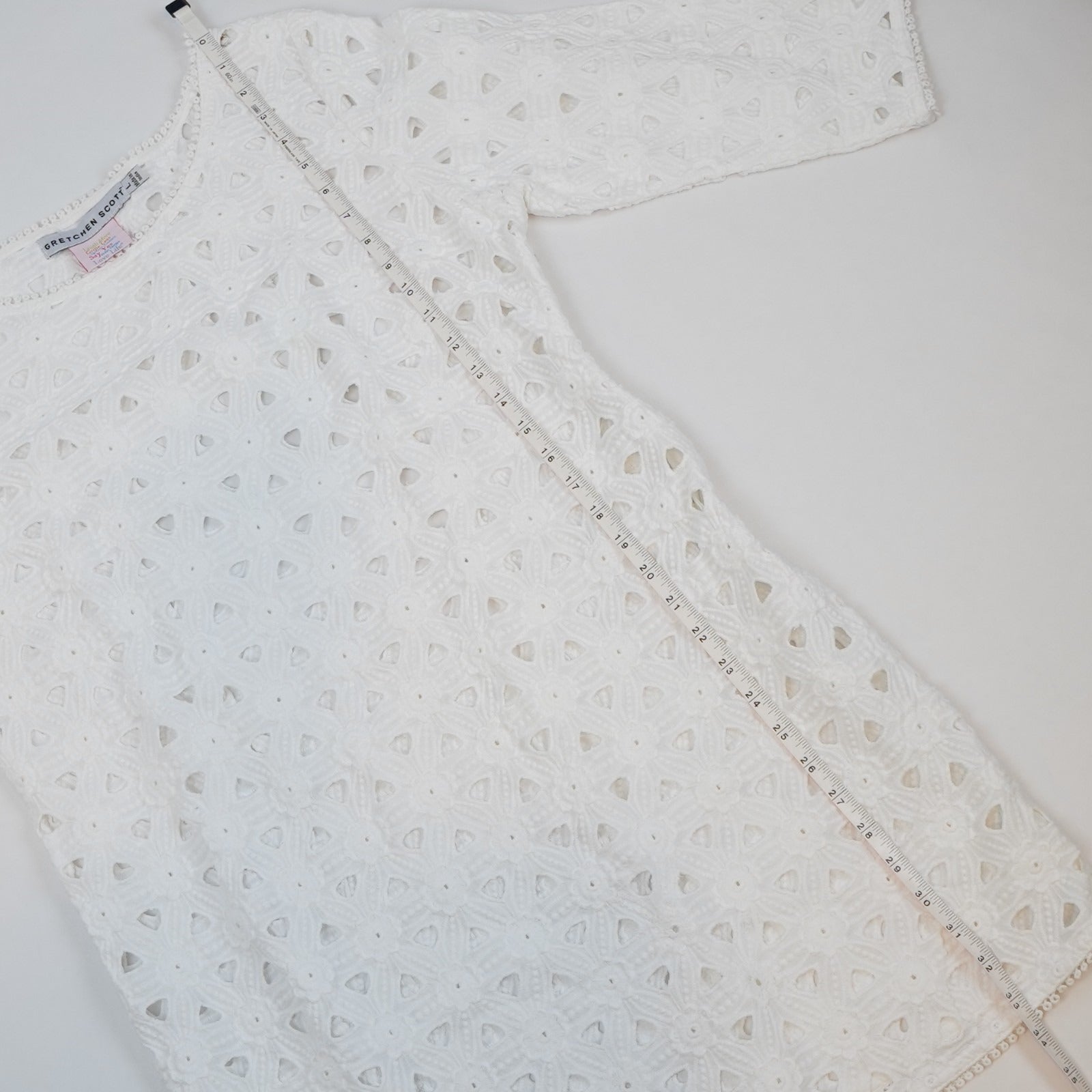 Gretchen Scott Pizelle Dress 3/4 Sleeve Eyelet Lace White - L