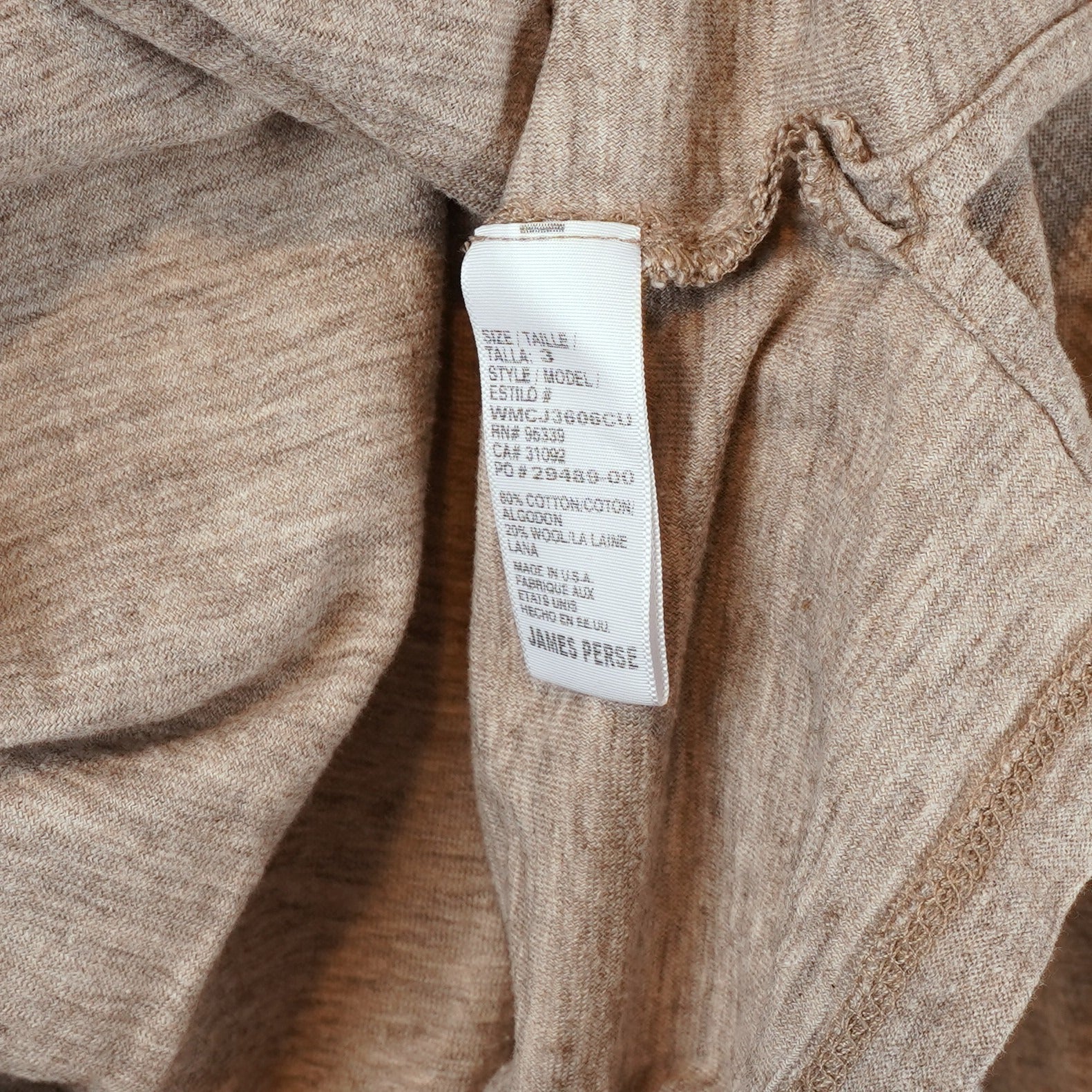 James Perse Slub Long Sleeve Crew Light Tan - L