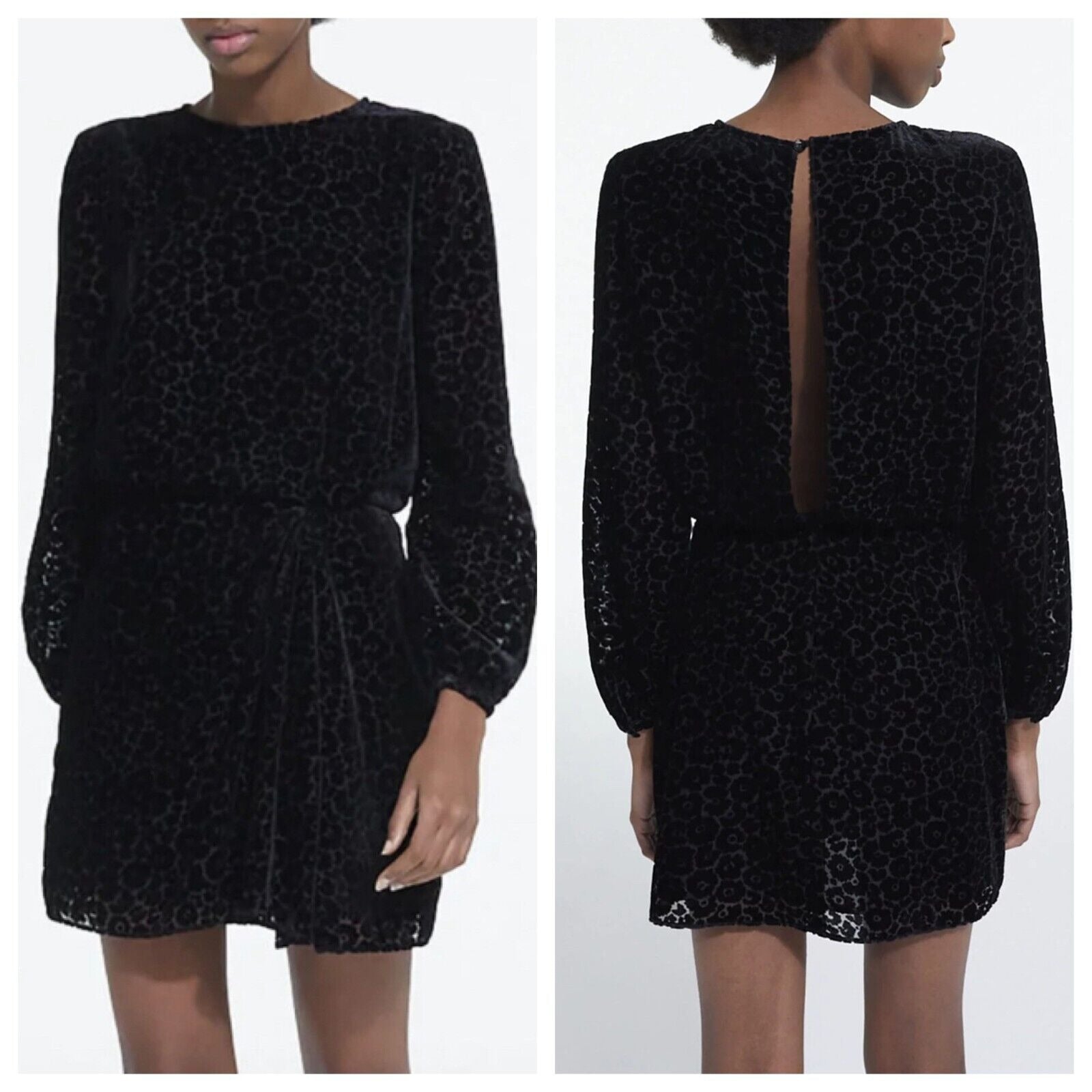 Kooples Velvet Floral Burnout Short Black Mini Dress