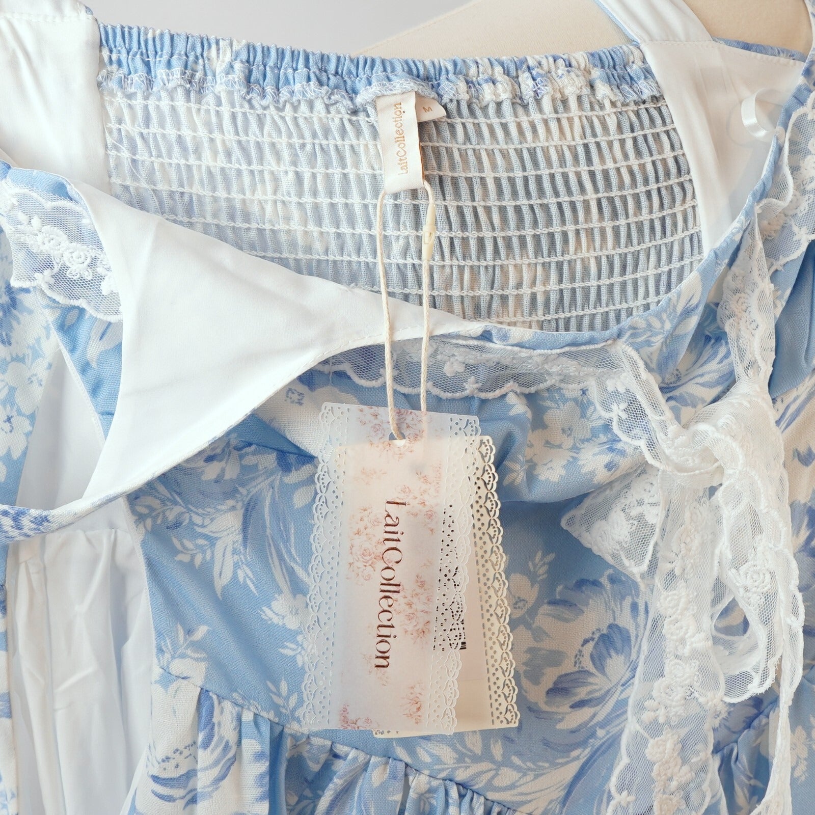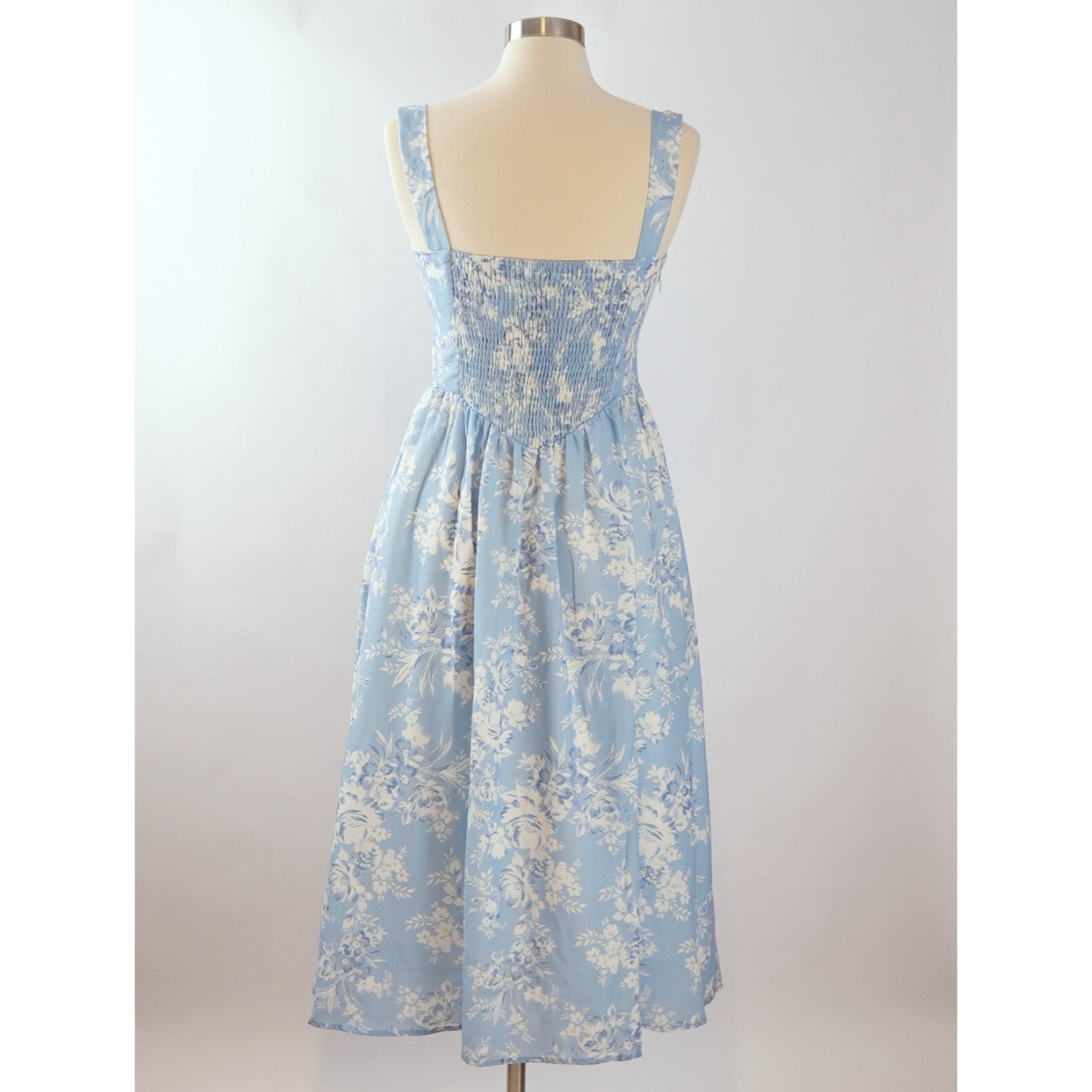 Lait Collection Luna Lace-Bow Floral Midi Dress - M