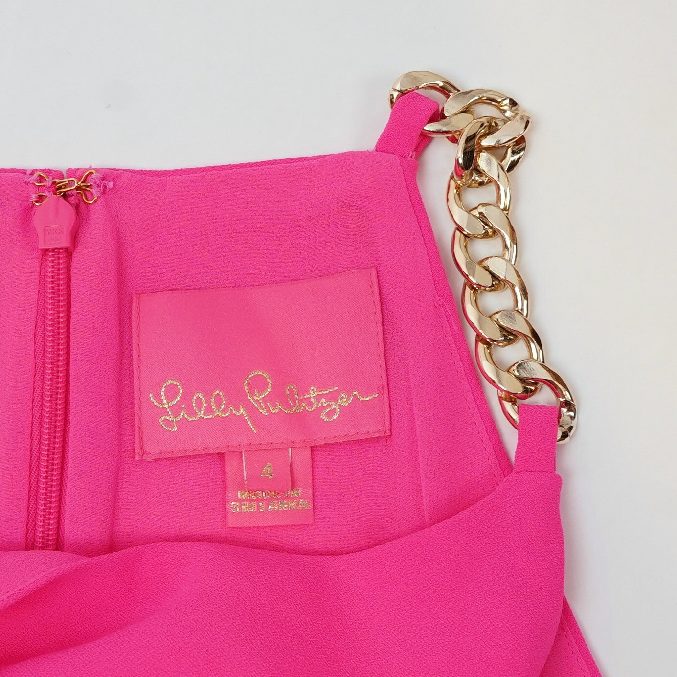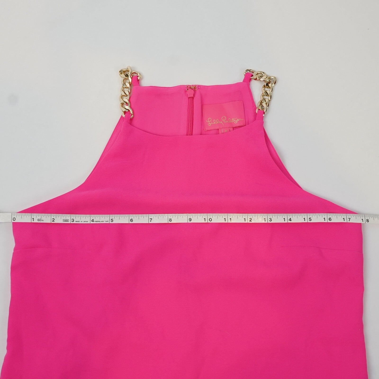 Lilly Pulitzer Adrienne Shift Dress Bright Pink Gold Hardware - 4